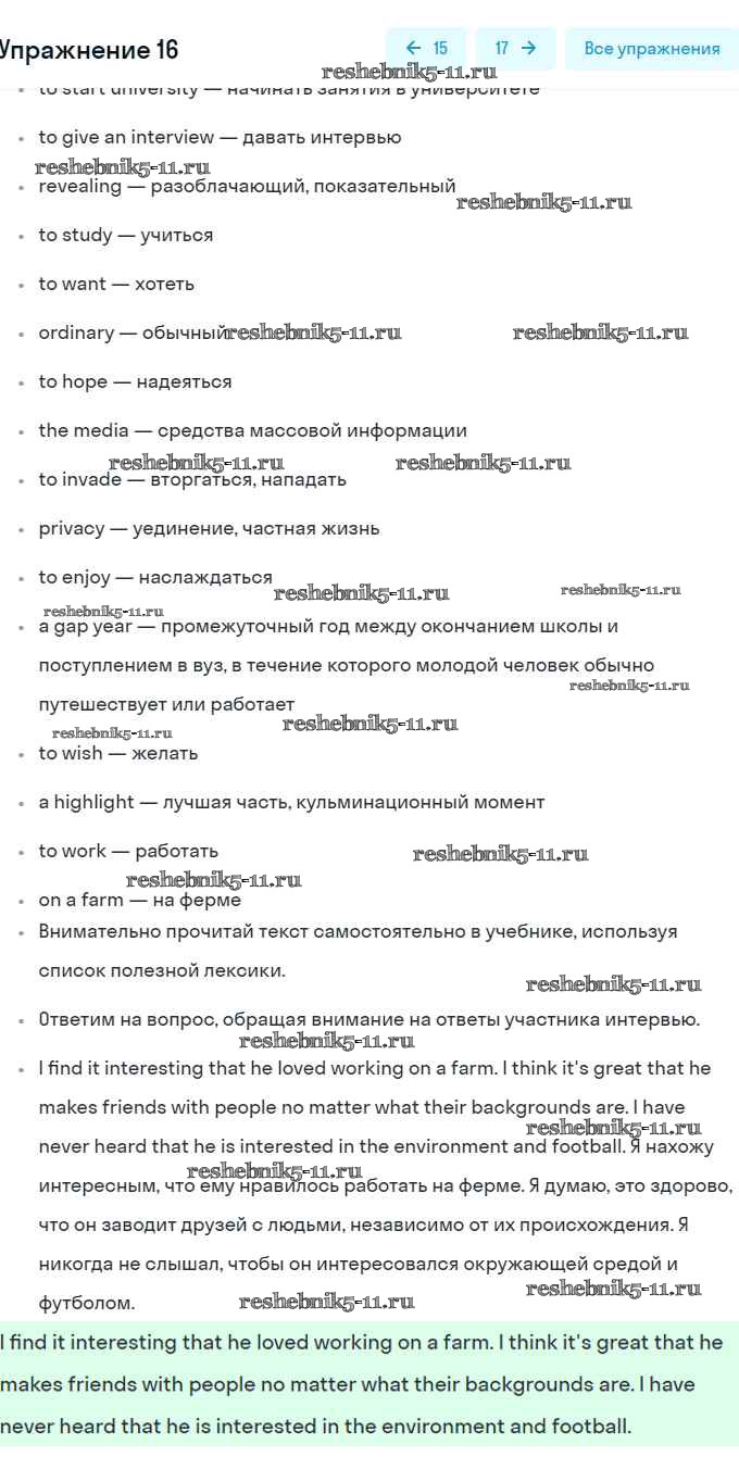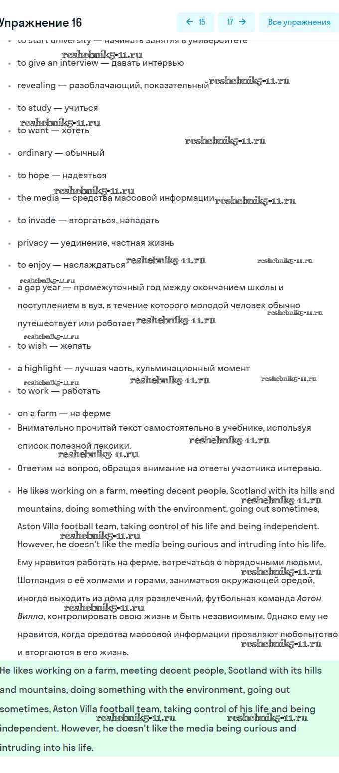 Английский язык за 8 класс Афанасьева Учебник Углубленный уровень Просвещение unit 6 16
