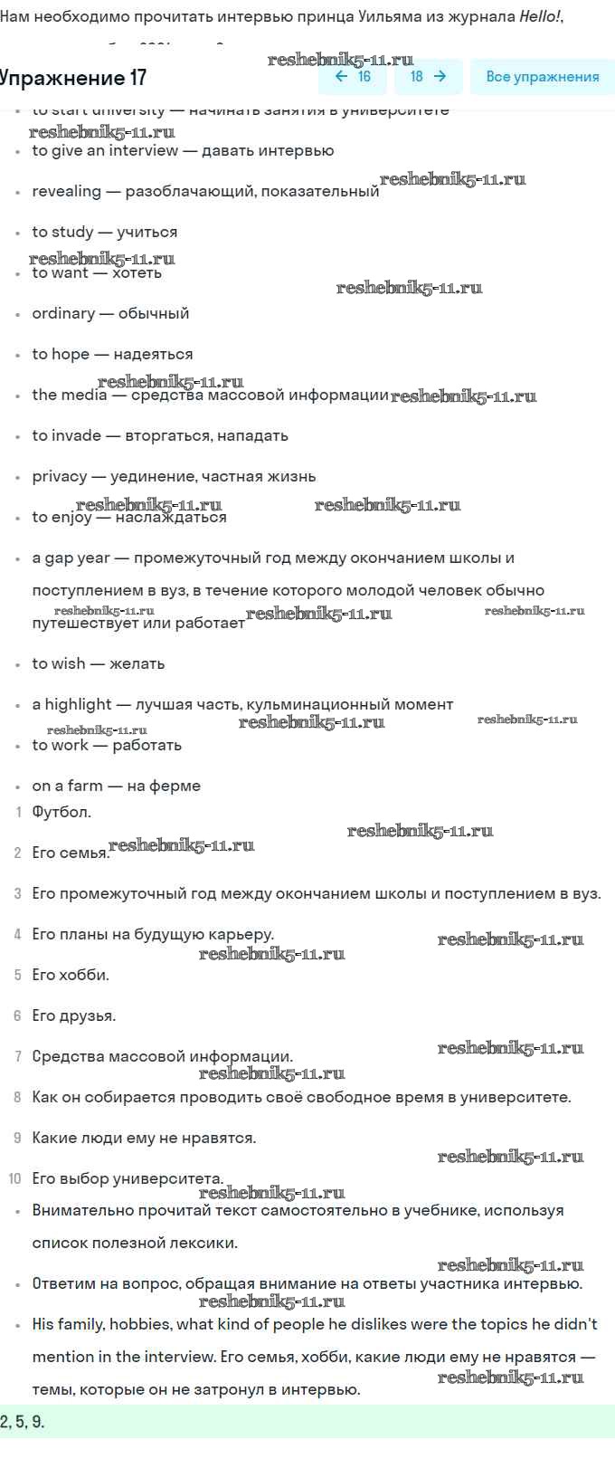 Готовая домашняя работа с ответами по Английскому языку за 8 класс Афанасьева, Михеева Учебник Углубленный уровень Просвещение 2014 ФГОС - Unit 6. Newspapers and Television: The World of Mass Media 17