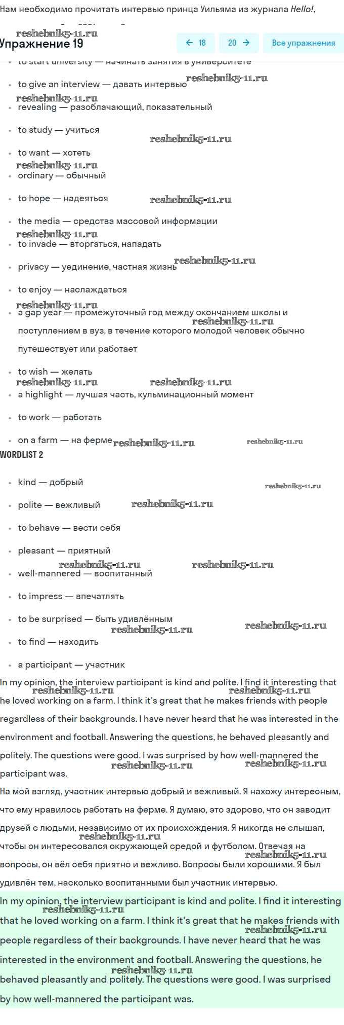 Английский язык за 8 класс Афанасьева Учебник Углубленный уровень Просвещение unit 6 19
