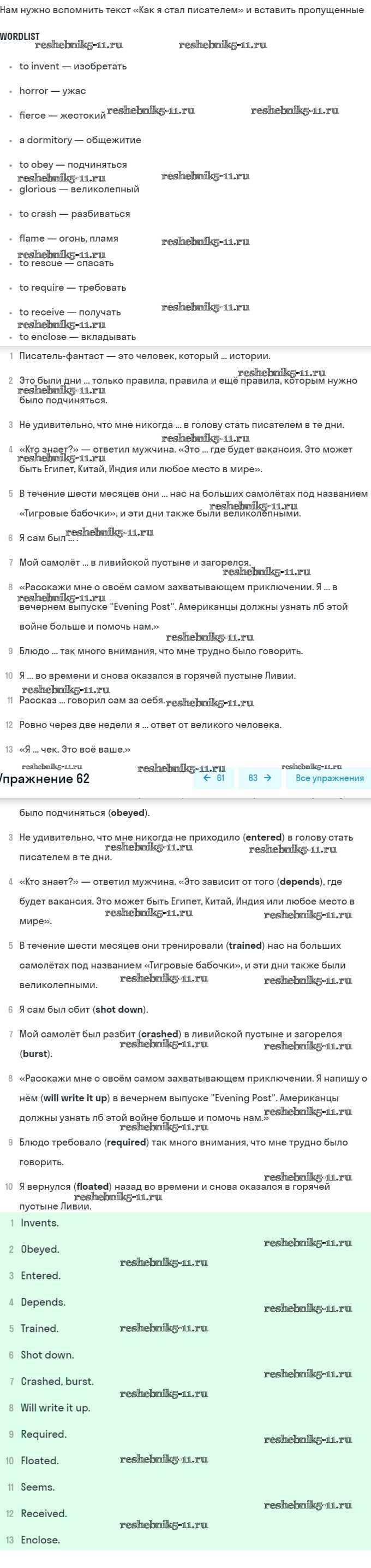 Готовая домашняя работа с ответами по Английскому языку за 8 класс Афанасьева, Михеева Учебник Углубленный уровень Просвещение 2014 ФГОС - Unit 6. Newspapers and Television: The World of Mass Media 62