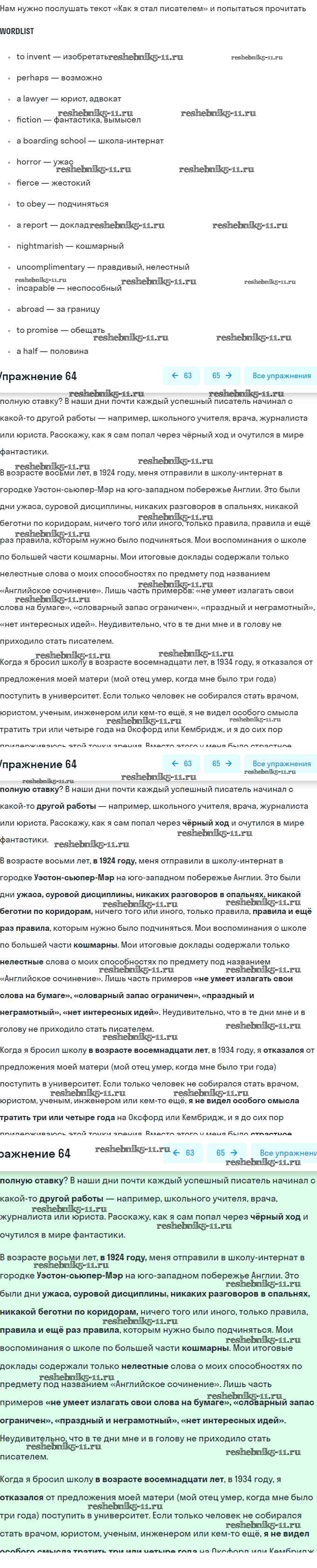 Готовая домашняя работа с ответами по Английскому языку за 8 класс Афанасьева, Михеева Учебник Углубленный уровень Просвещение 2014 ФГОС - Unit 6. Newspapers and Television: The World of Mass Media 64