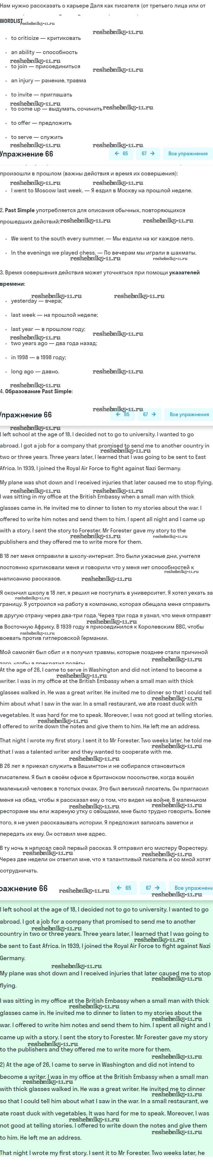 Готовая домашняя работа с ответами по Английскому языку за 8 класс Афанасьева, Михеева Учебник Углубленный уровень Просвещение 2014 ФГОС - Unit 6. Newspapers and Television: The World of Mass Media 66