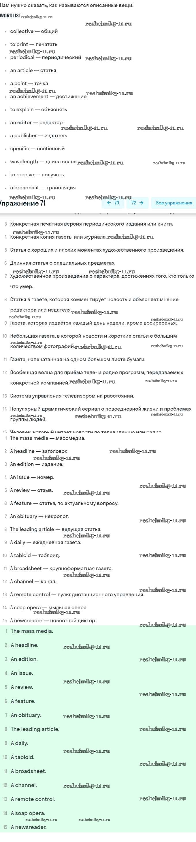 Готовая домашняя работа с ответами по Английскому языку за 8 класс Афанасьева, Михеева Учебник Углубленный уровень Просвещение 2014 ФГОС - Unit 6. Newspapers and Television: The World of Mass Media 71