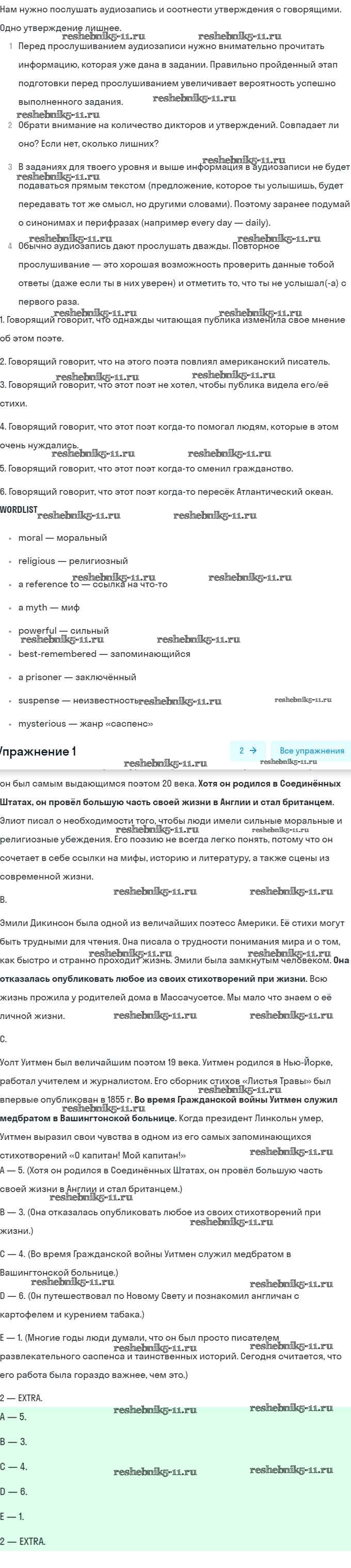 Готовая домашняя работа с ответами по Английскому языку за 8 класс Афанасьева, Михеева Учебник Углубленный уровень Просвещение 2014 ФГОС - Unit 6 1