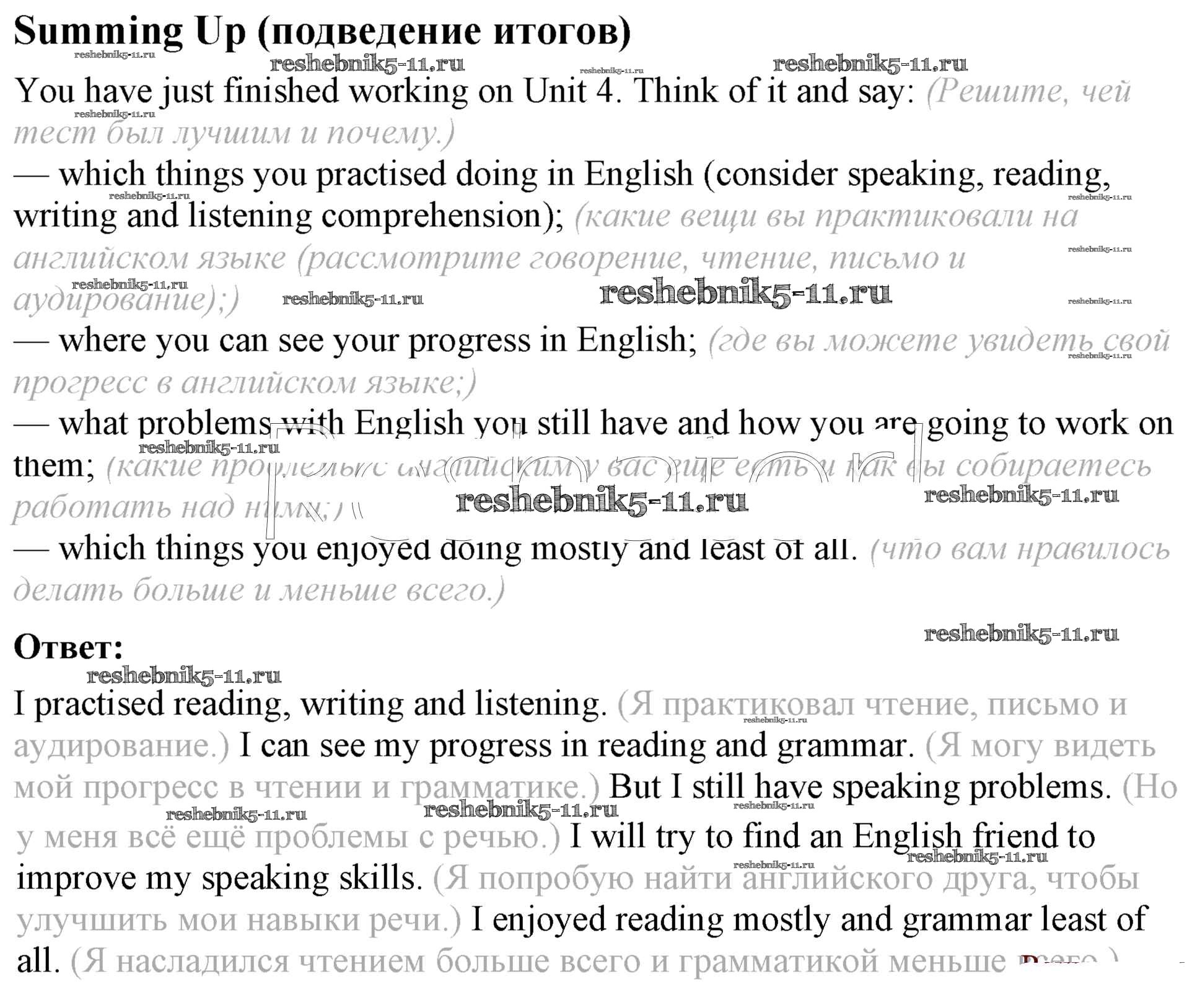 Готовая домашняя работа с ответами по Английскому языку за 8 класс Афанасьева, Михеева Учебник Углубленный уровень Просвещение 2014 ФГОС - Unit 4 Summing Up