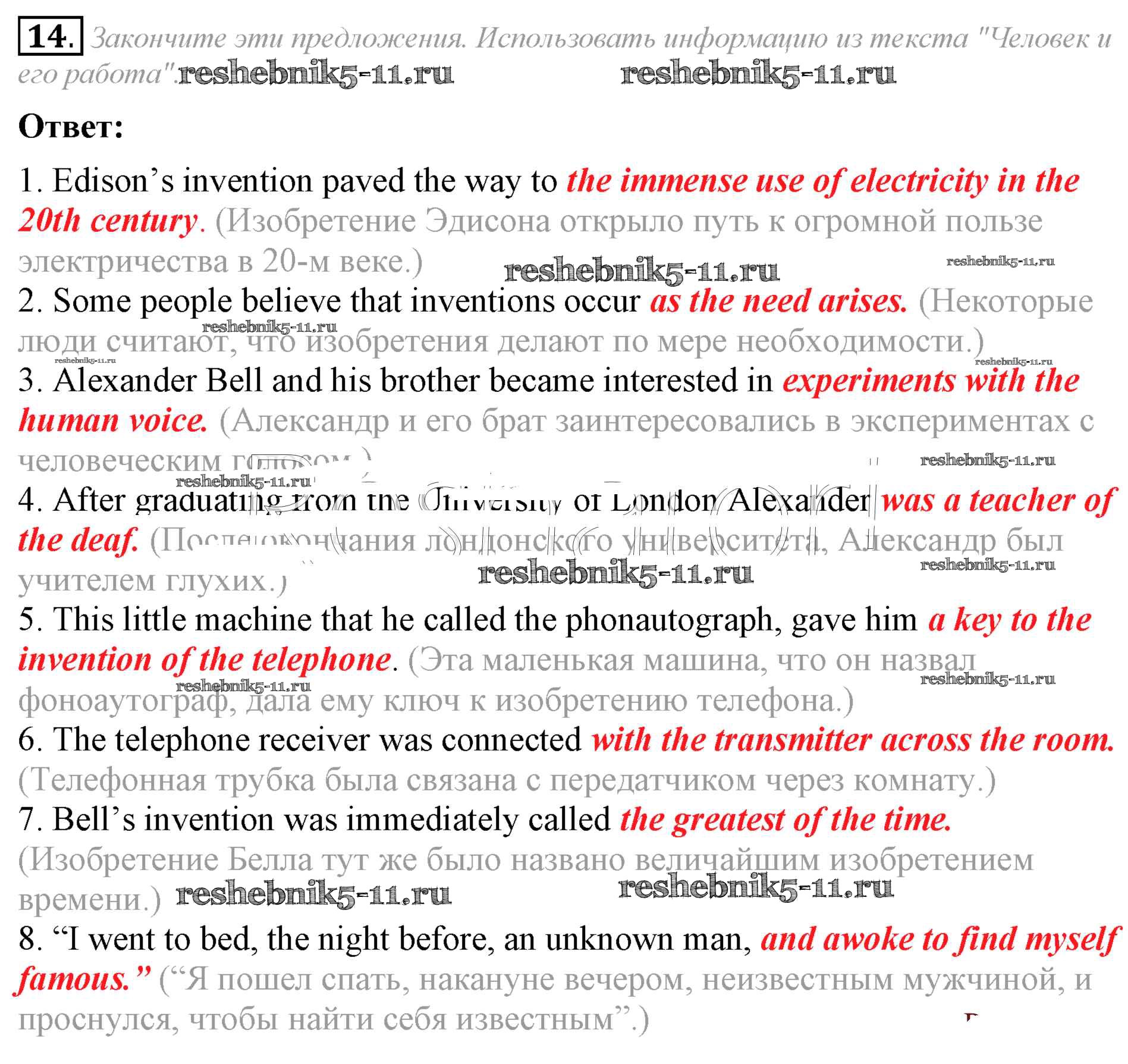 Готовая домашняя работа с ответами по Английскому языку за 8 класс Афанасьева, Михеева Учебник Углубленный уровень Просвещение 2014 ФГОС - Unit 4 14