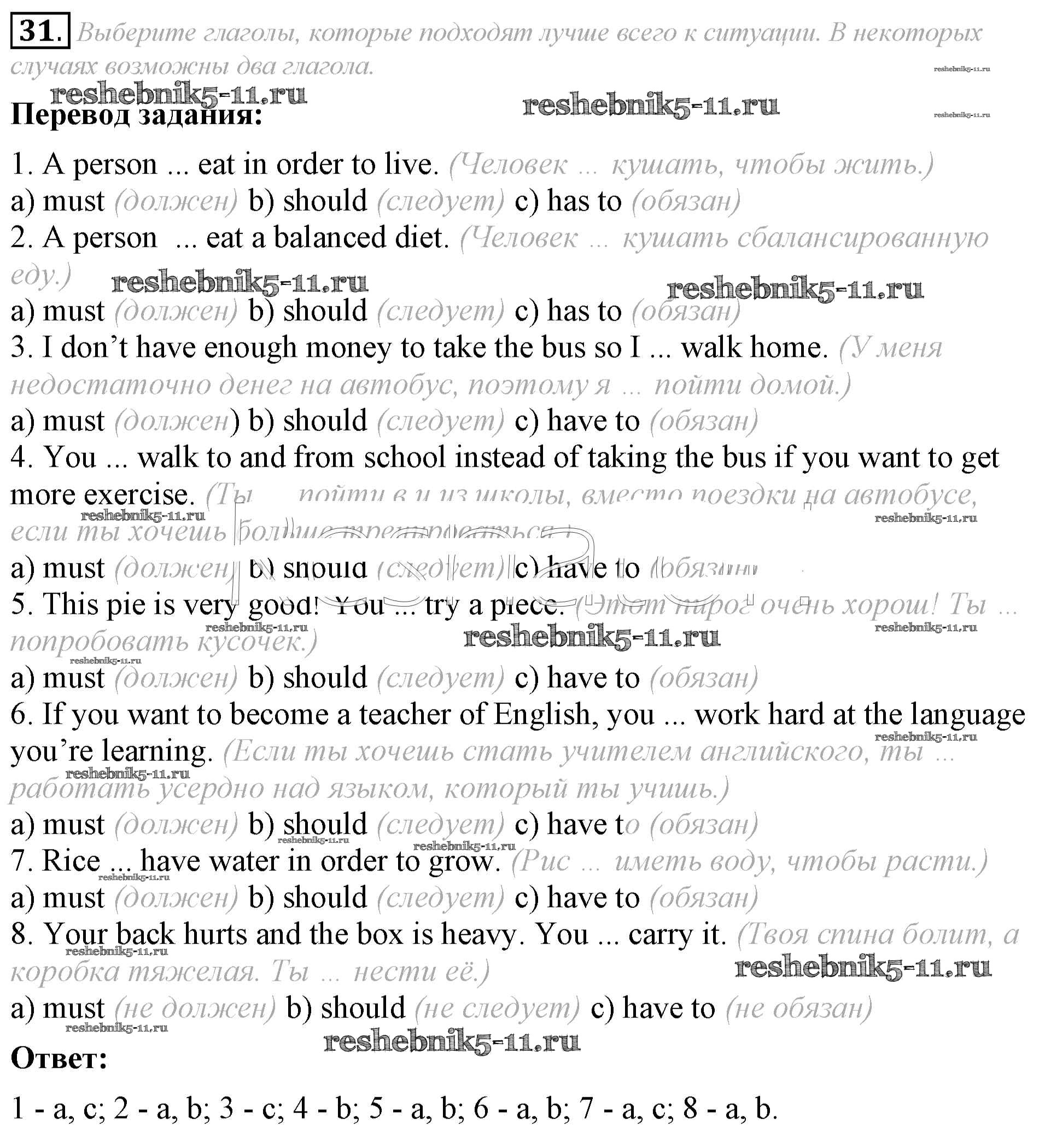 Готовая домашняя работа с ответами по Английскому языку за 8 класс Афанасьева, Михеева Учебник Углубленный уровень Просвещение 2014 ФГОС - Unit 4 31