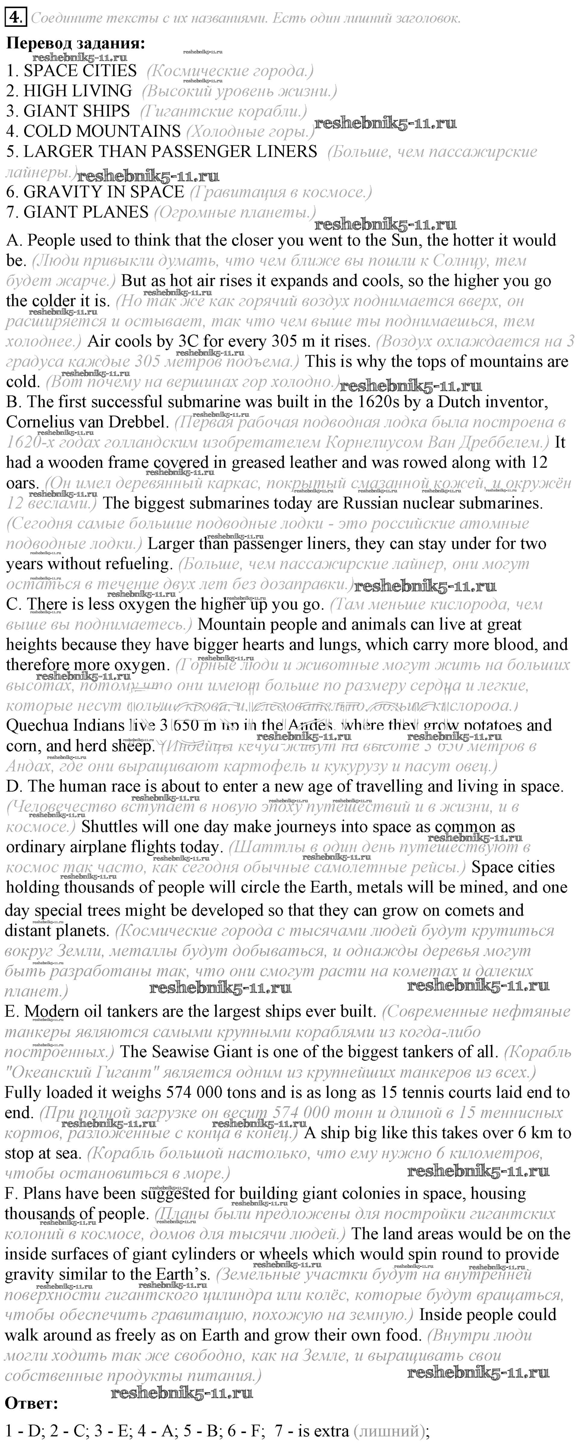 Готовая домашняя работа с ответами по Английскому языку за 8 класс Афанасьева, Михеева Учебник Углубленный уровень Просвещение 2014 ФГОС - Unit 4 4