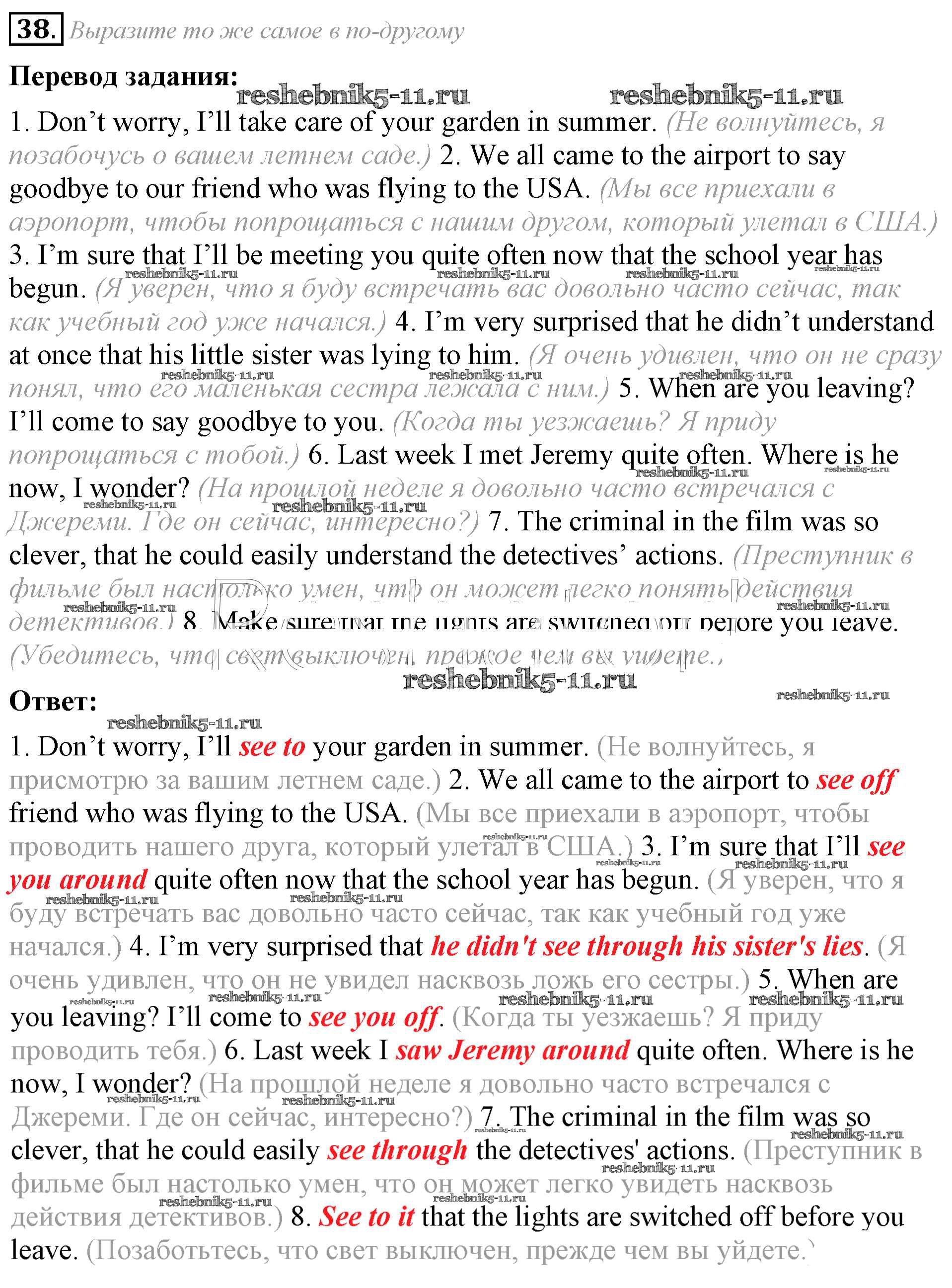 Готовая домашняя работа с ответами по Английскому языку за 8 класс Афанасьева, Михеева Учебник Углубленный уровень Просвещение 2014 ФГОС - Unit 4 38