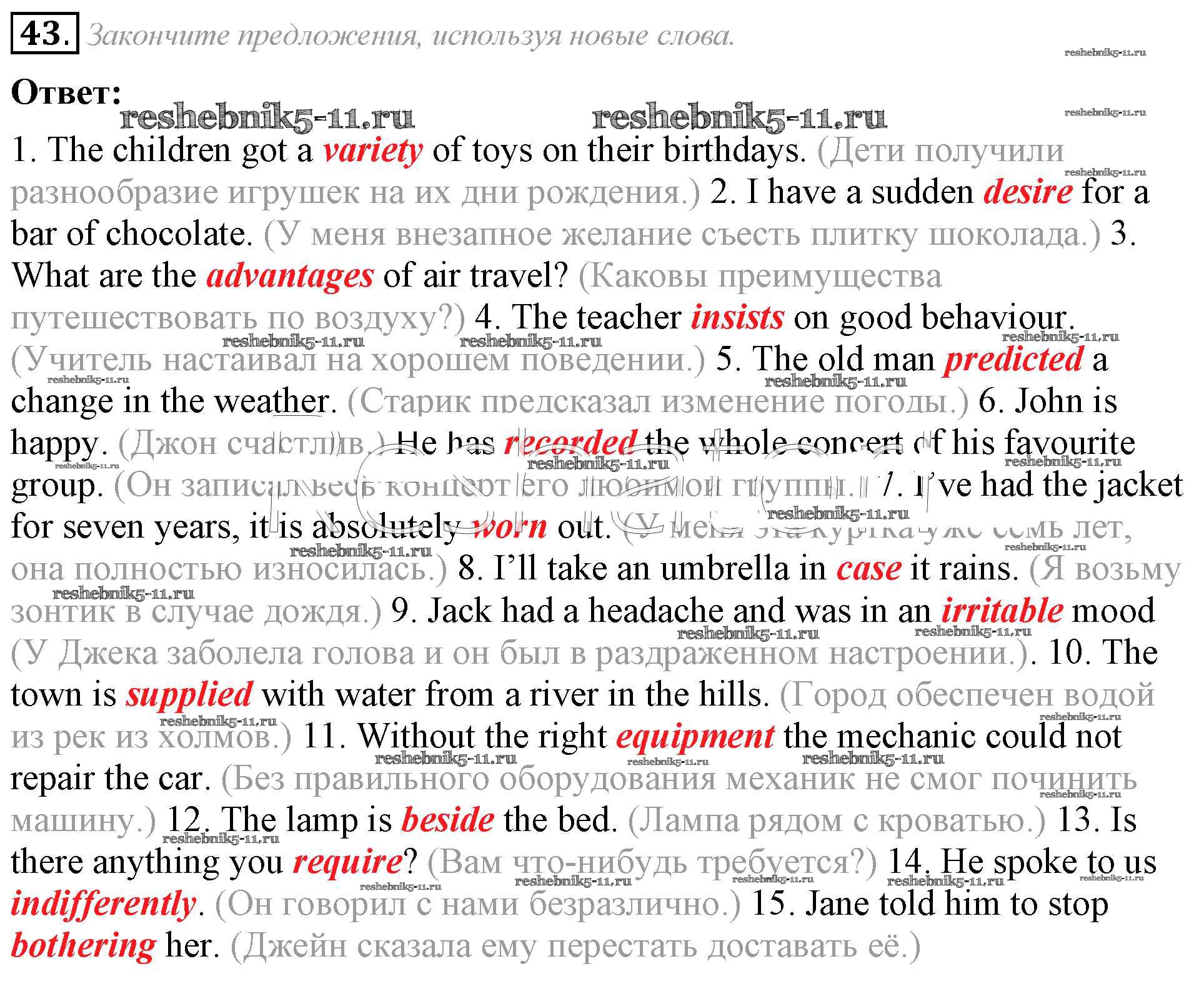 Готовая домашняя работа с ответами по Английскому языку за 8 класс Афанасьева, Михеева Учебник Углубленный уровень Просвещение 2014 ФГОС - Unit 4 43