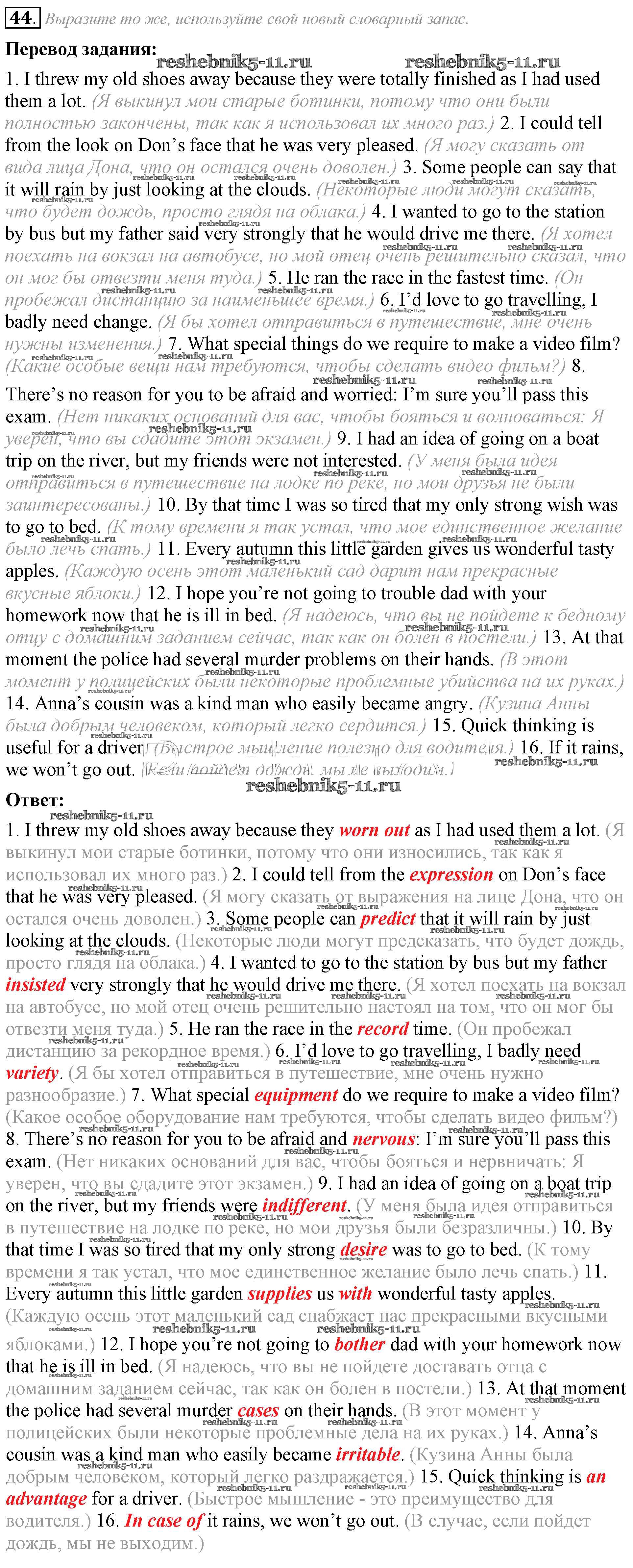 Готовая домашняя работа с ответами по Английскому языку за 8 класс Афанасьева, Михеева Учебник Углубленный уровень Просвещение 2014 ФГОС - Unit 4 44