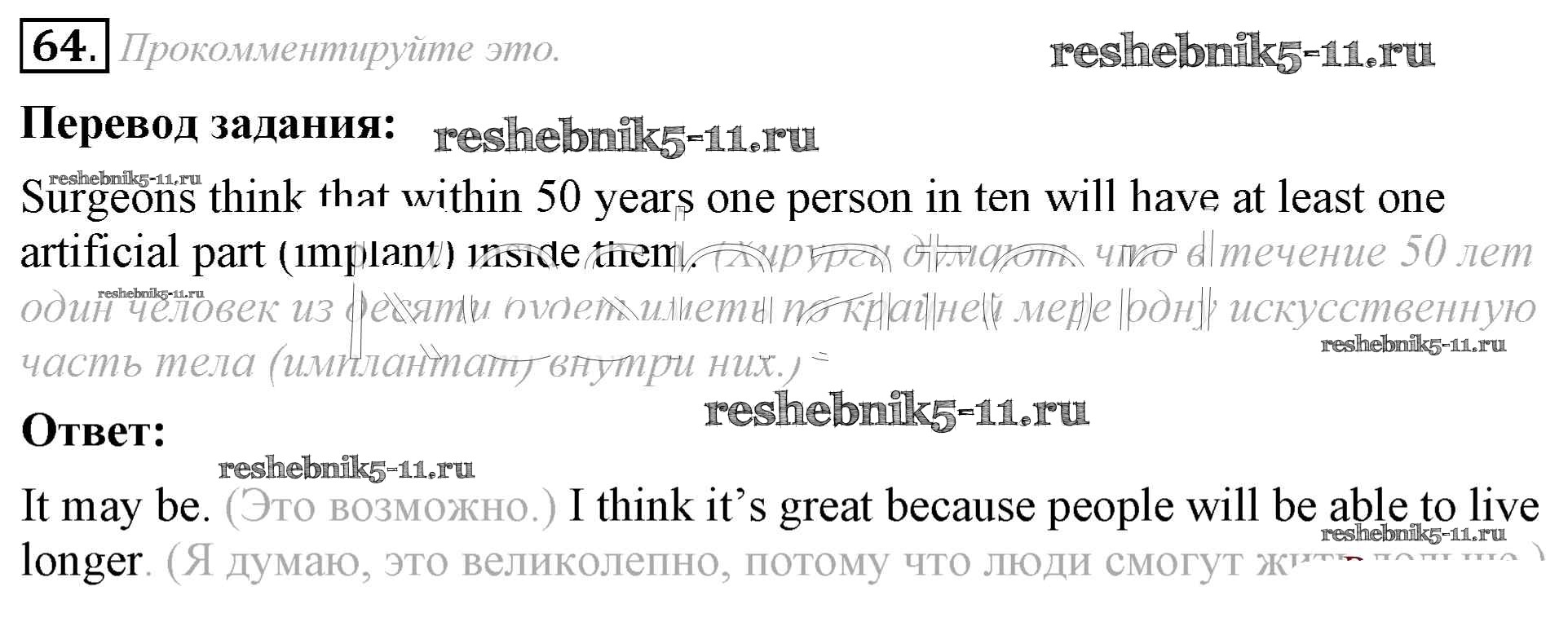 Готовая домашняя работа с ответами по Английскому языку за 8 класс Афанасьева, Михеева Учебник Углубленный уровень Просвещение 2014 ФГОС - Unit 4 64