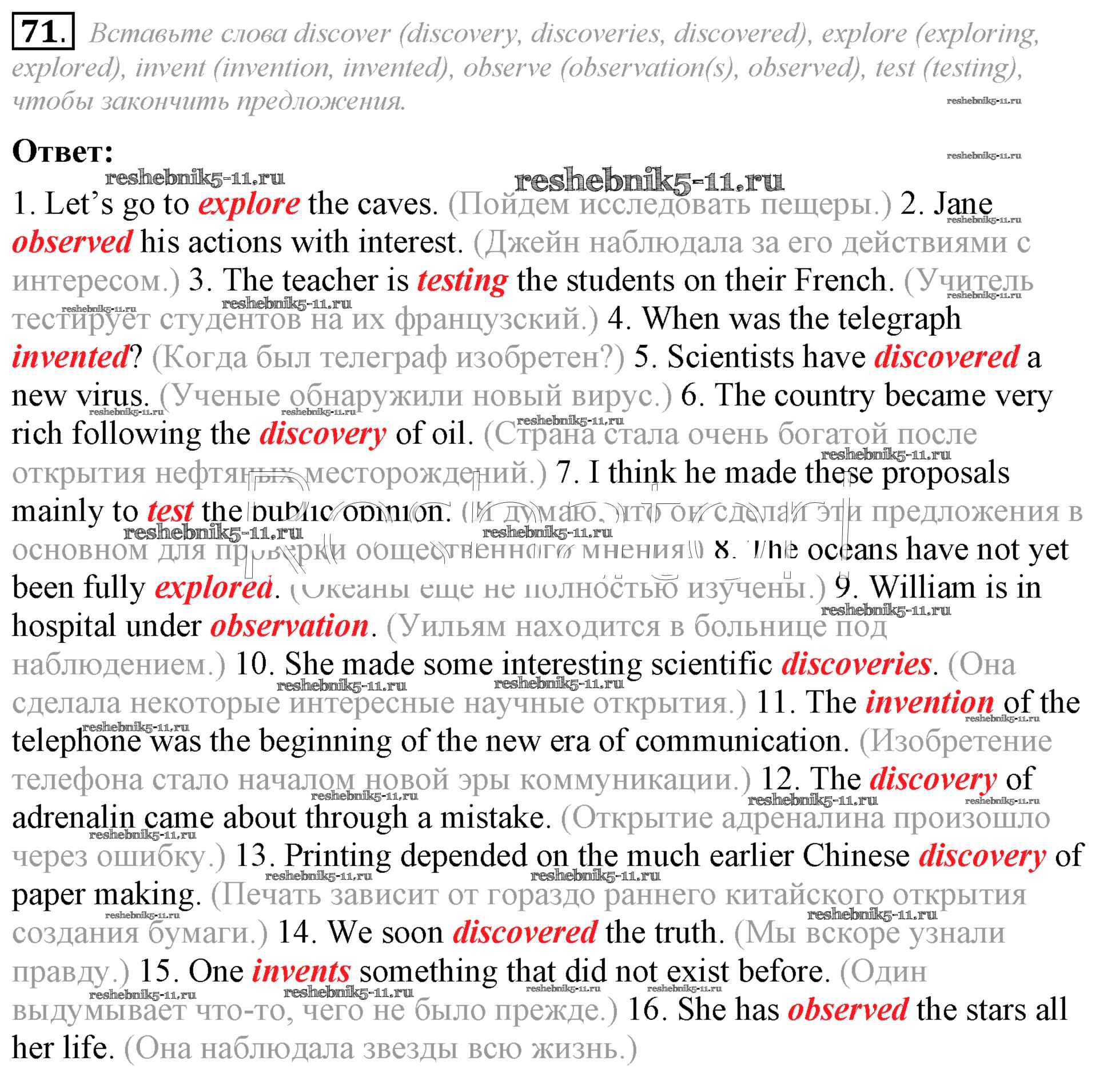Готовая домашняя работа с ответами по Английскому языку за 8 класс Афанасьева, Михеева Учебник Углубленный уровень Просвещение 2014 ФГОС - Unit 4 71