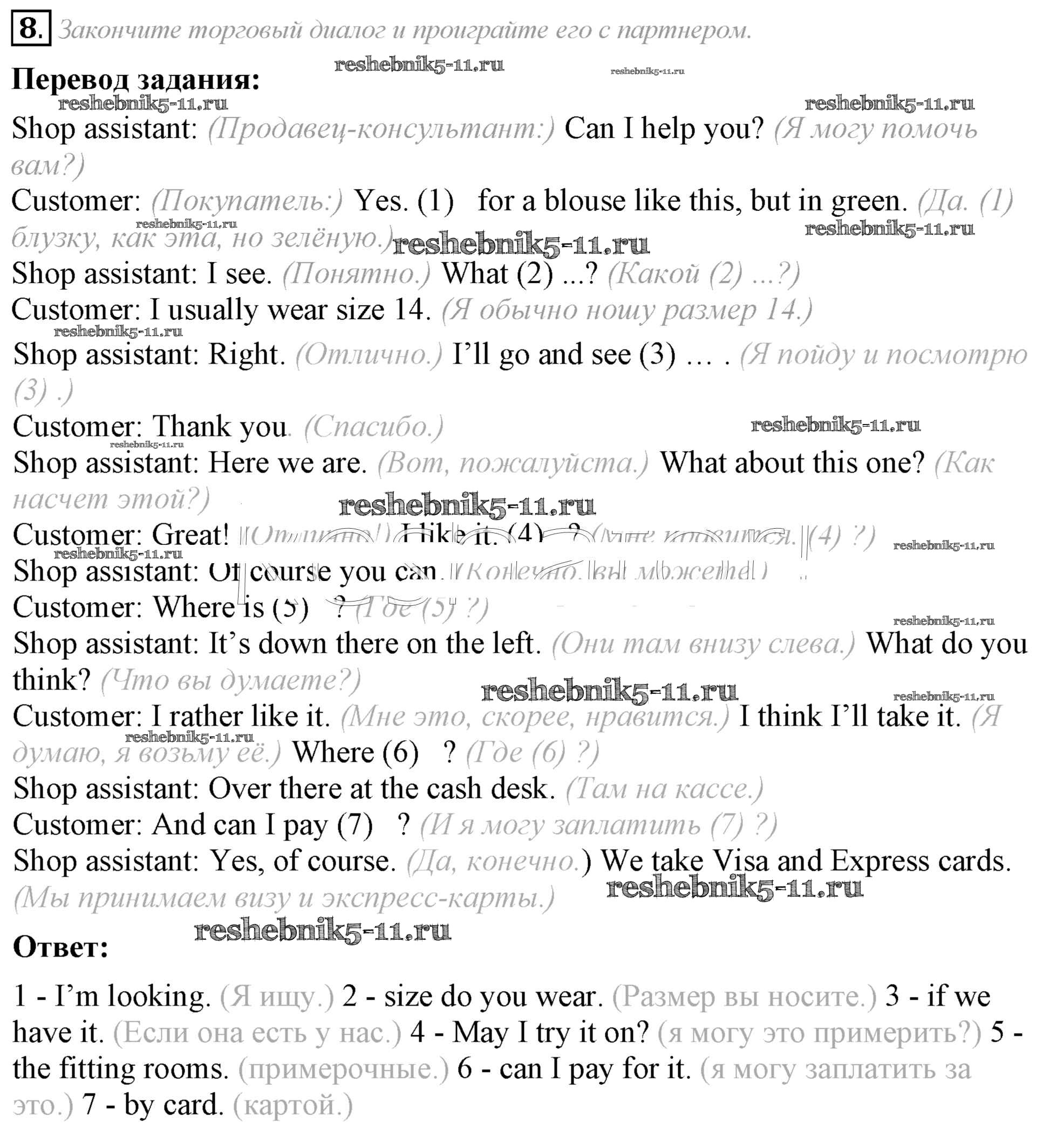 Готовая домашняя работа с ответами по Английскому языку за 8 класс Афанасьева, Михеева Учебник Углубленный уровень Просвещение 2014 ФГОС - Unit 4 8