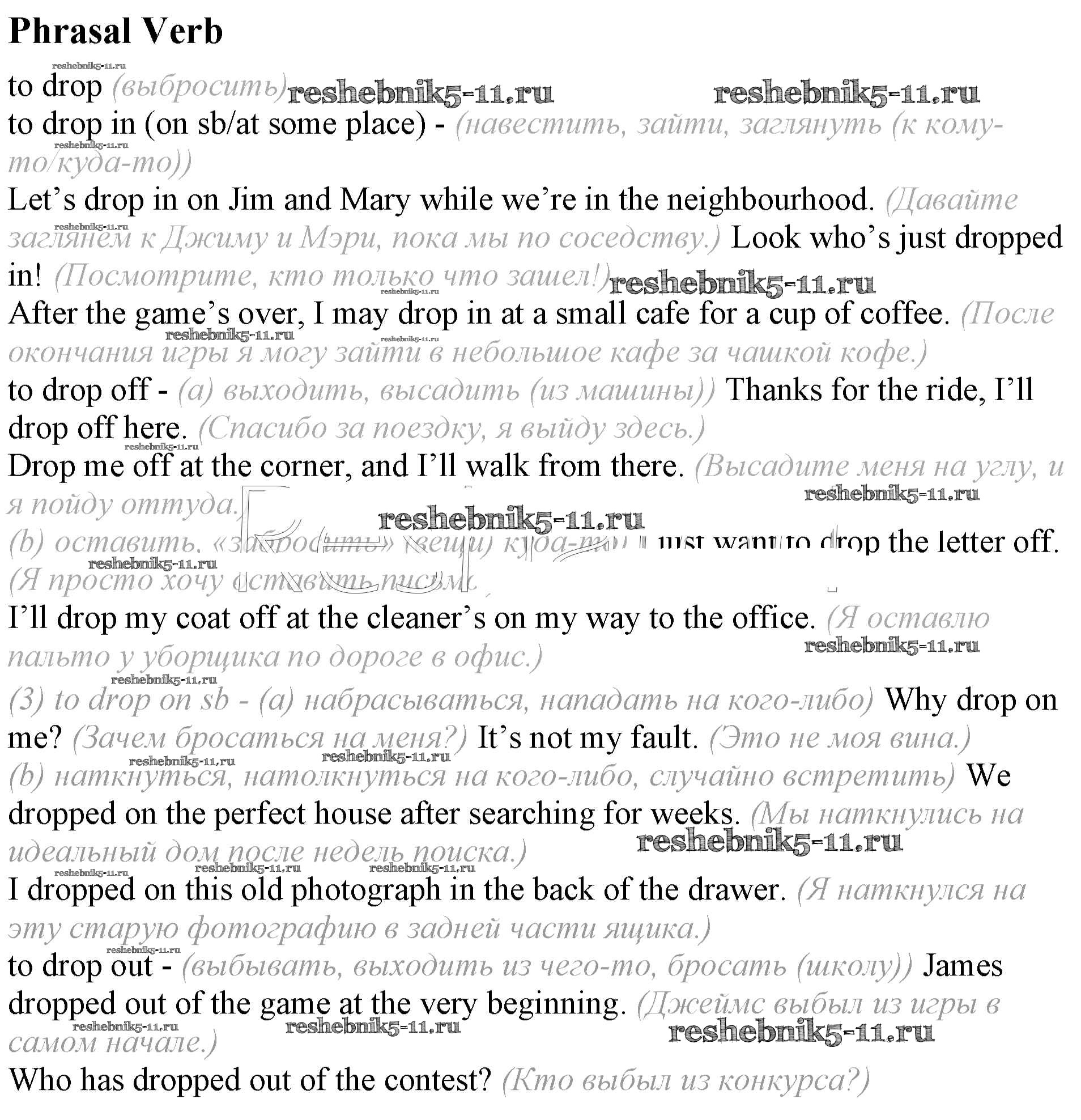 Готовая домашняя работа с ответами по Английскому языку за 8 класс Афанасьева, Михеева Учебник Углубленный уровень Просвещение 2014 ФГОС - Unit 5 Phrasal Verb
