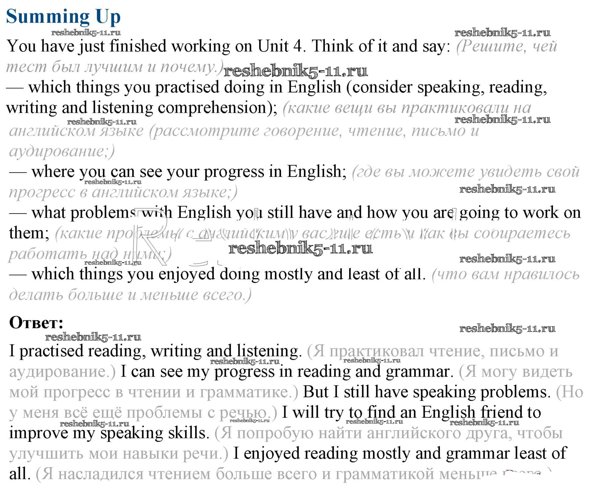 Готовая домашняя работа с ответами по Английскому языку за 8 класс Афанасьева, Михеева Учебник Углубленный уровень Просвещение 2014 ФГОС - Unit 5 Summing Up