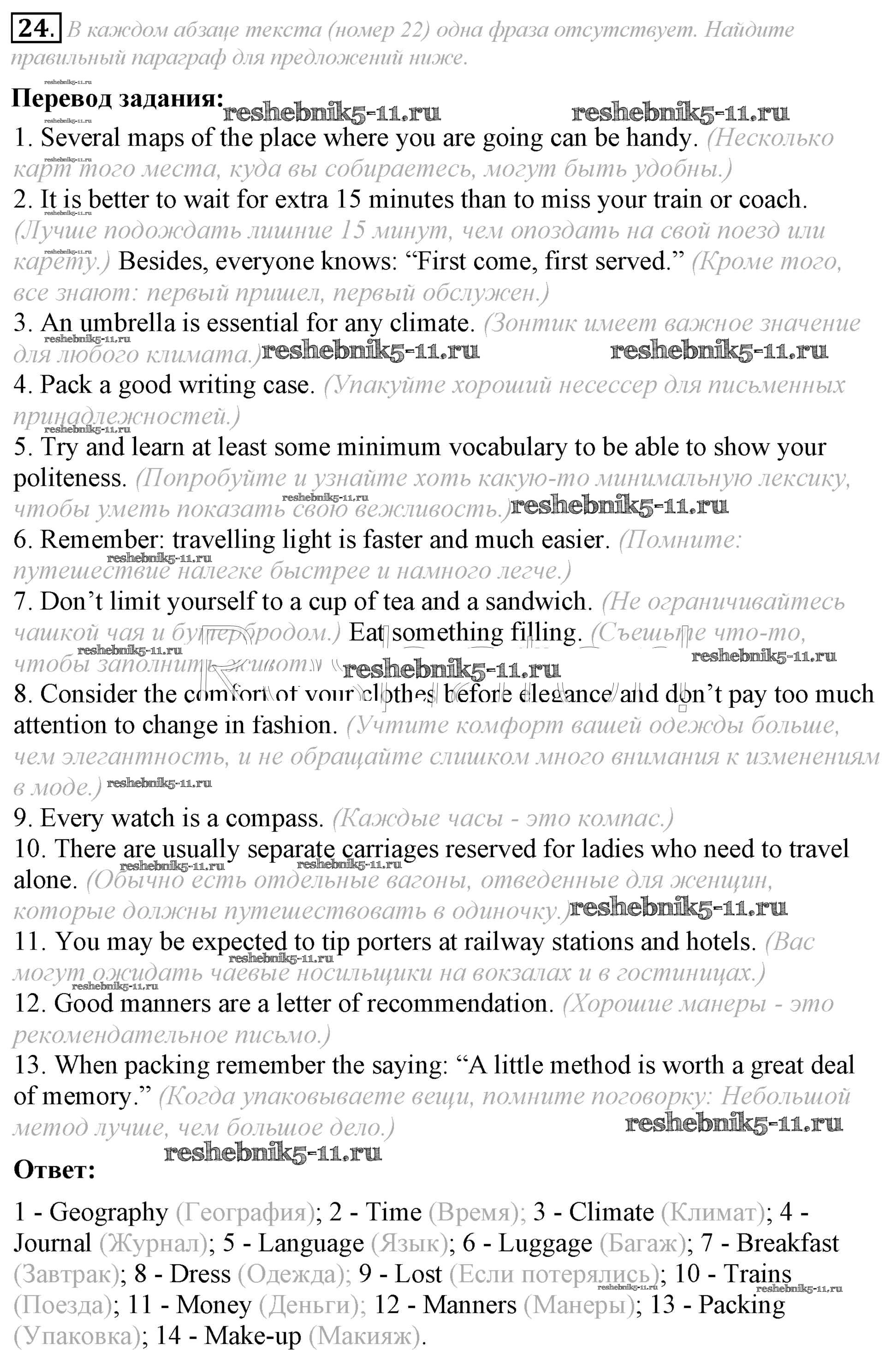 Готовая домашняя работа с ответами по Английскому языку за 8 класс Афанасьева, Михеева Учебник Углубленный уровень Просвещение 2014 ФГОС - Unit 5 24