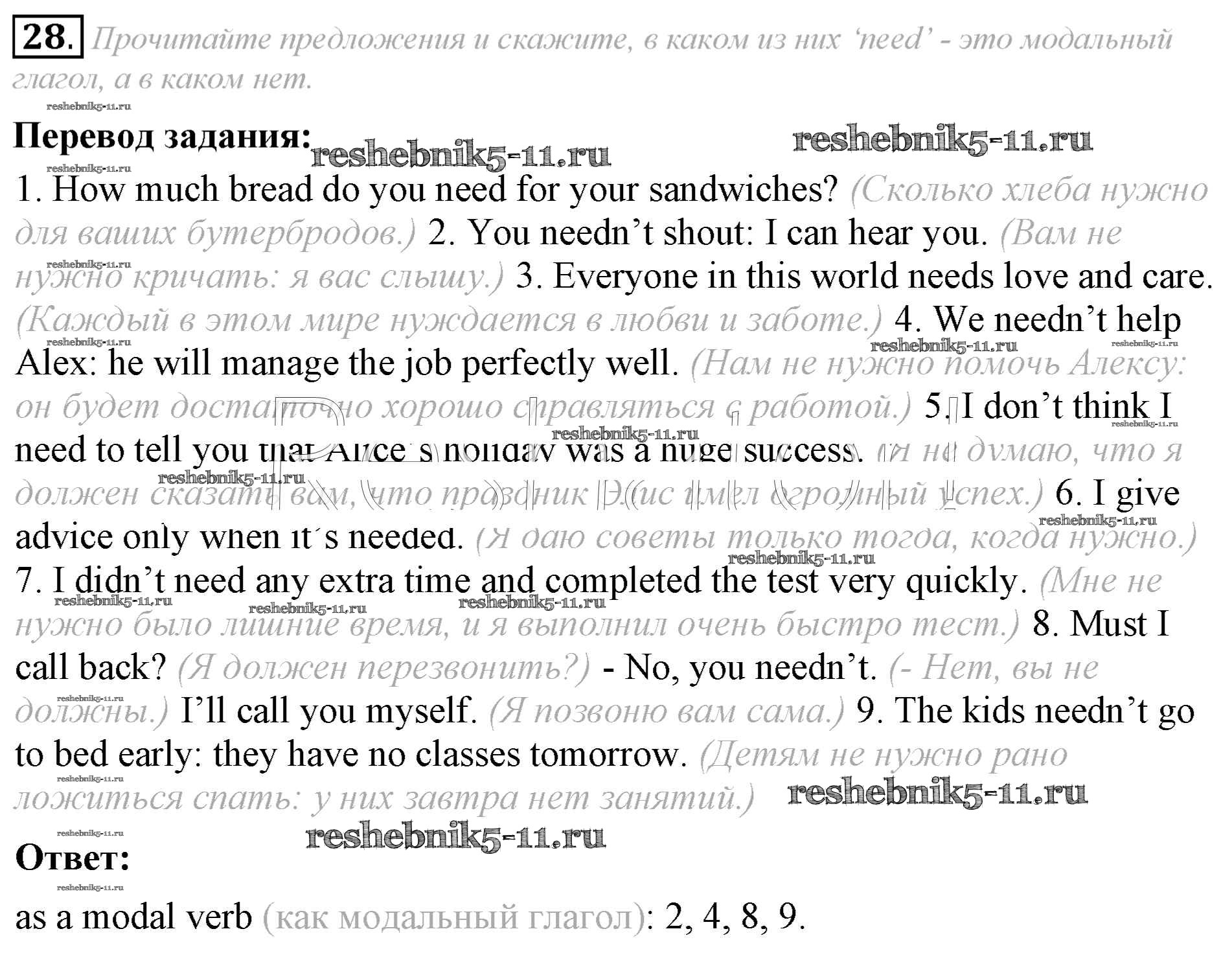 Готовая домашняя работа с ответами по Английскому языку за 8 класс Афанасьева, Михеева Учебник Углубленный уровень Просвещение 2014 ФГОС - Unit 5 28