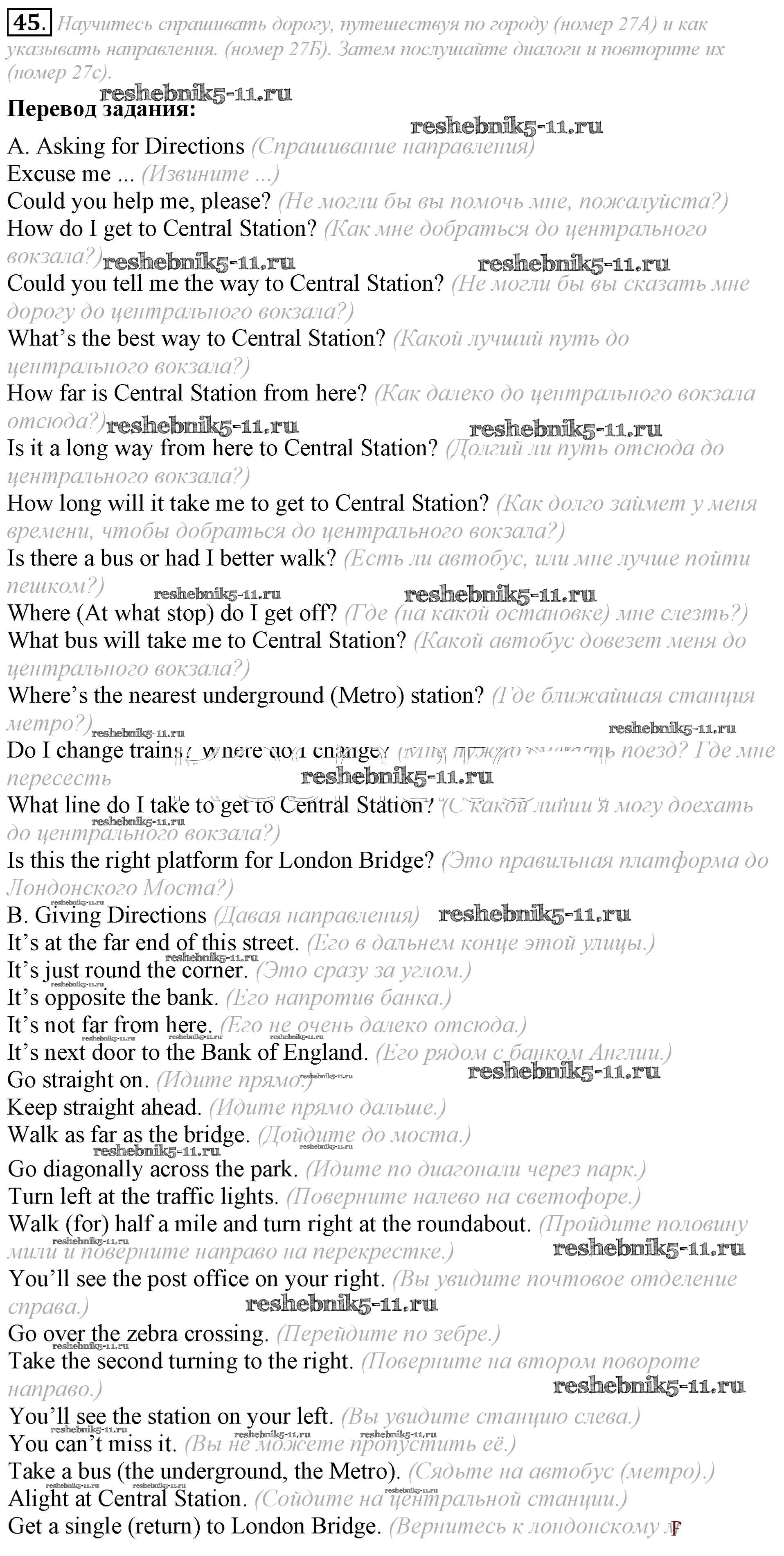 Готовая домашняя работа с ответами по Английскому языку за 8 класс Афанасьева, Михеева Учебник Углубленный уровень Просвещение 2014 ФГОС - Unit 5 45