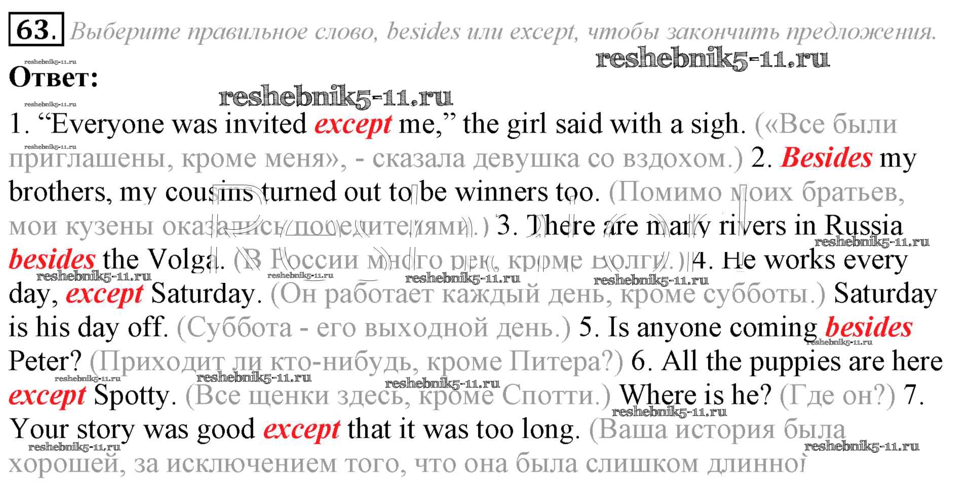 Готовая домашняя работа с ответами по Английскому языку за 8 класс Афанасьева, Михеева Учебник Углубленный уровень Просвещение 2014 ФГОС - Unit 5 63