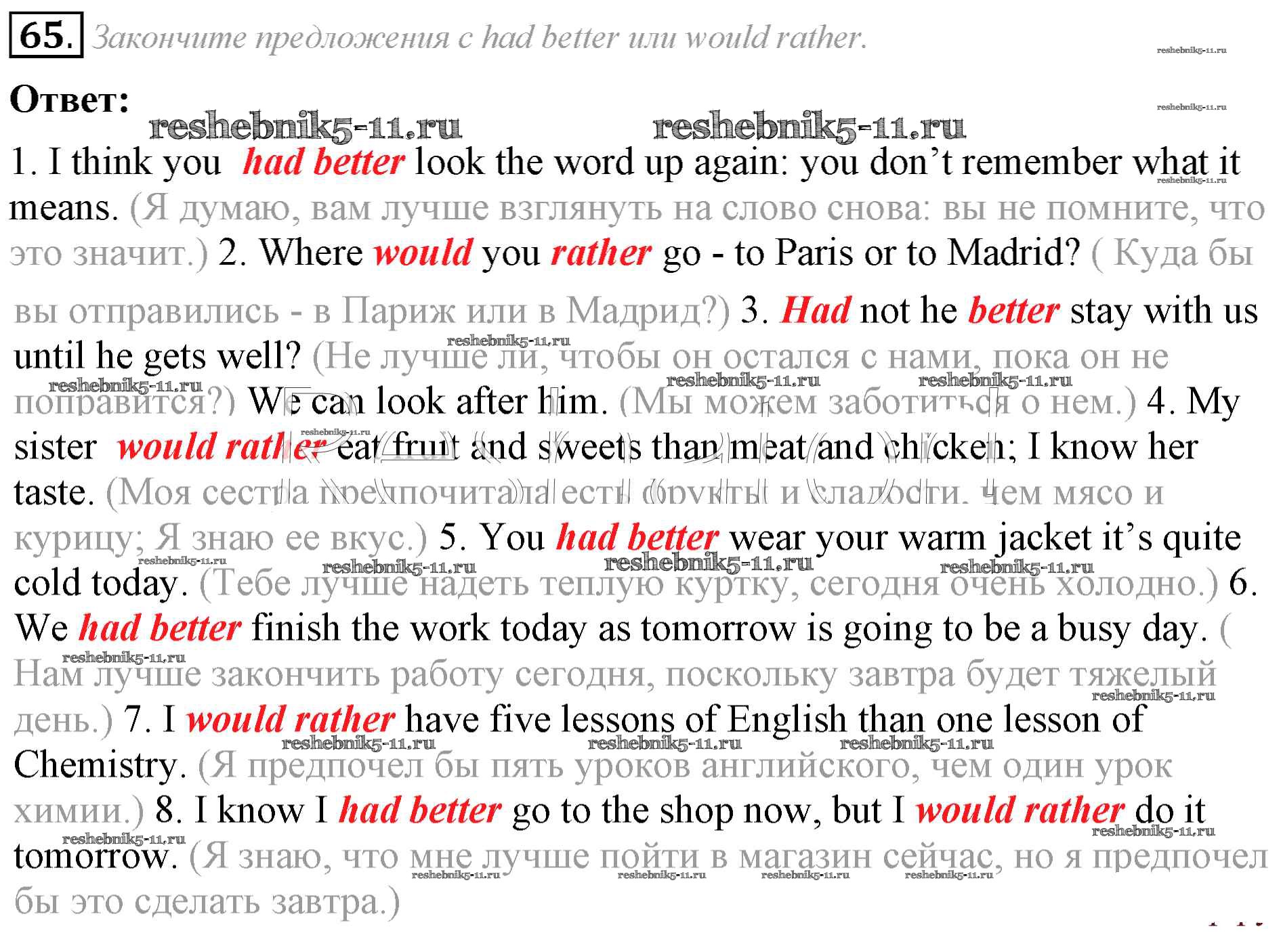 Готовая домашняя работа с ответами по Английскому языку за 8 класс Афанасьева, Михеева Учебник Углубленный уровень Просвещение 2014 ФГОС - Unit 5 65