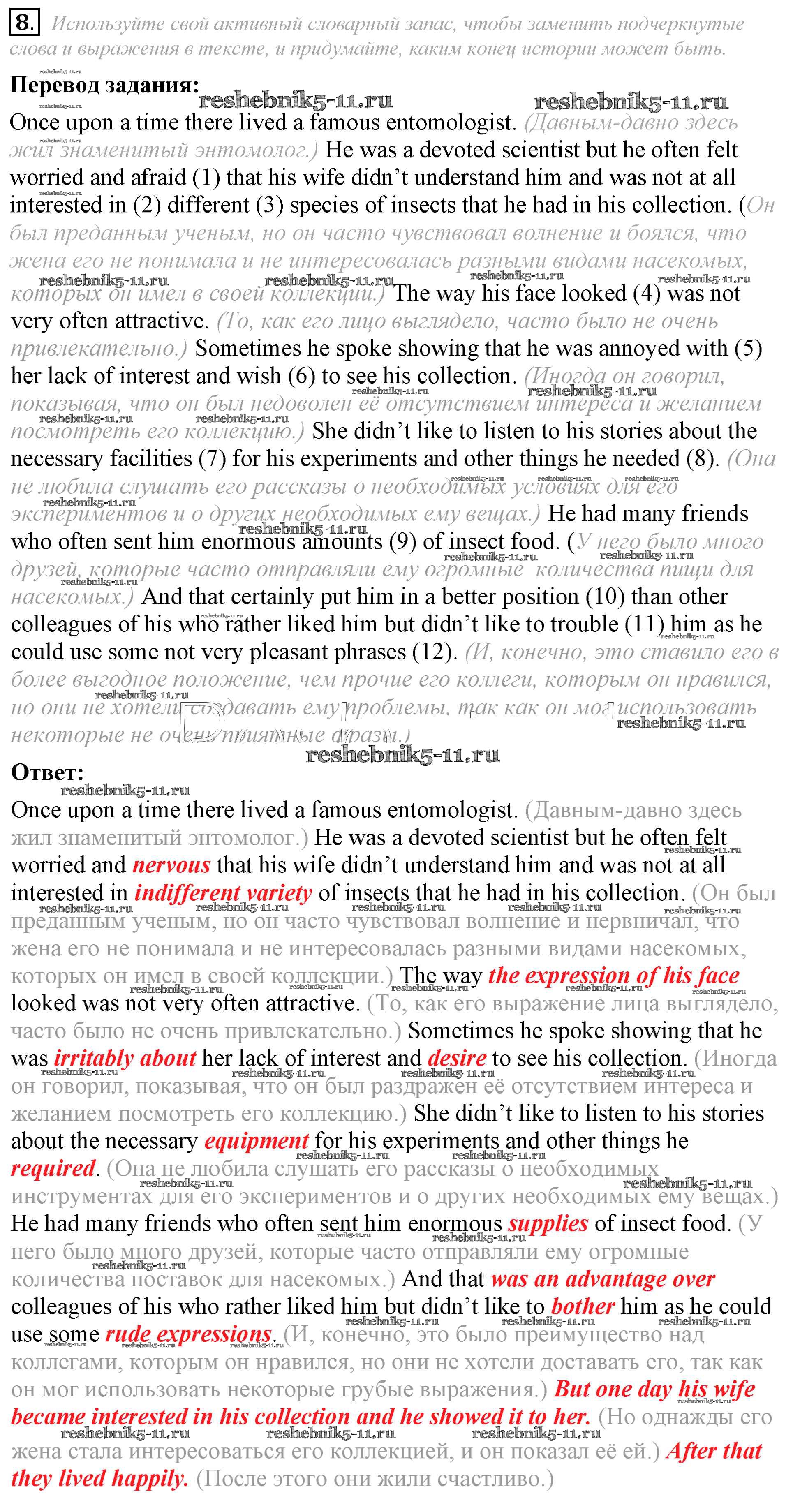 Готовая домашняя работа с ответами по Английскому языку за 8 класс Афанасьева, Михеева Учебник Углубленный уровень Просвещение 2014 ФГОС - Unit 5 8