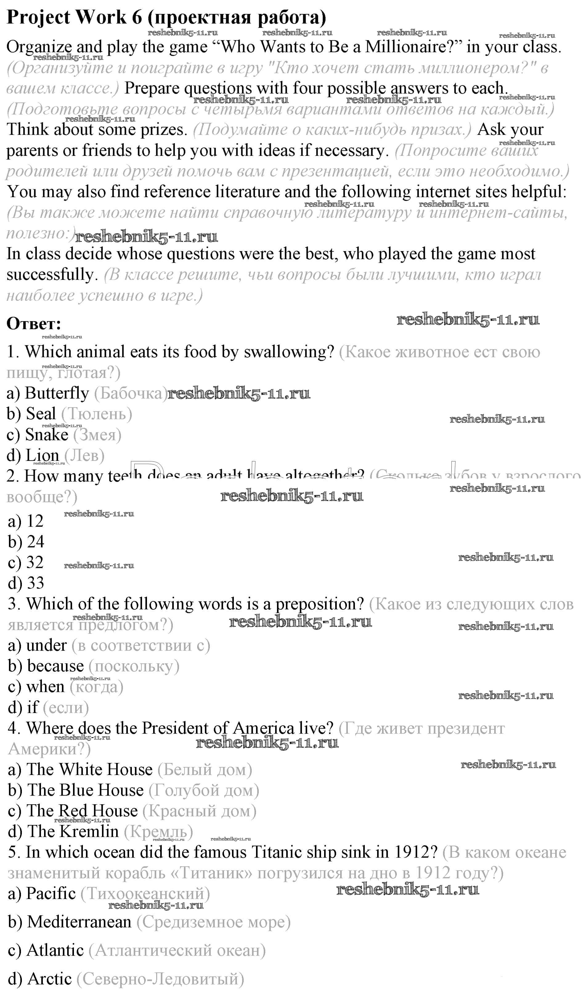 Готовая домашняя работа с ответами по Английскому языку за 8 класс Афанасьева, Михеева Учебник Углубленный уровень Просвещение 2014 ФГОС - Unit 6 Project Work