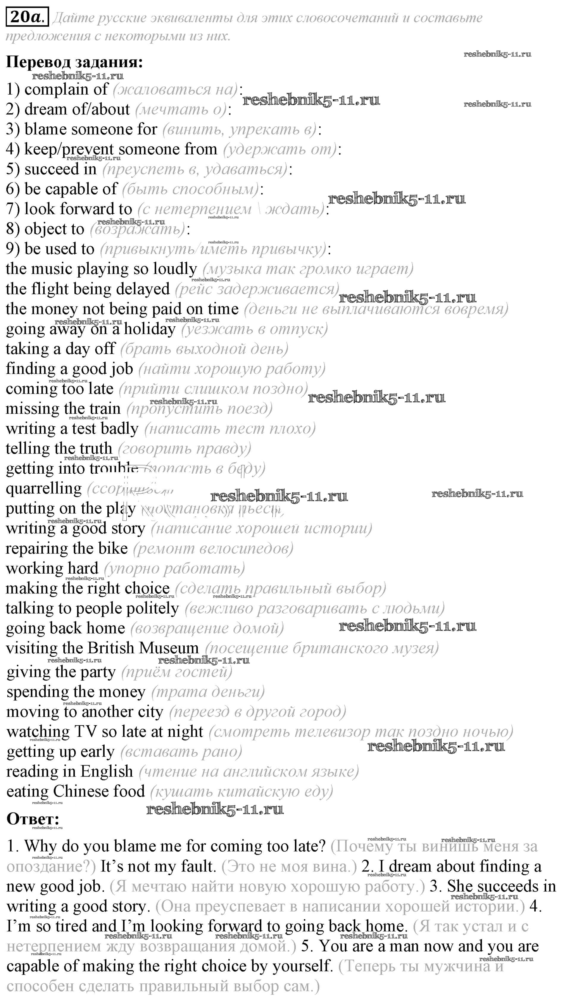 Готовая домашняя работа с ответами по Английскому языку за 8 класс Афанасьева, Михеева Учебник Углубленный уровень Просвещение 2014 ФГОС - Unit 6 20a