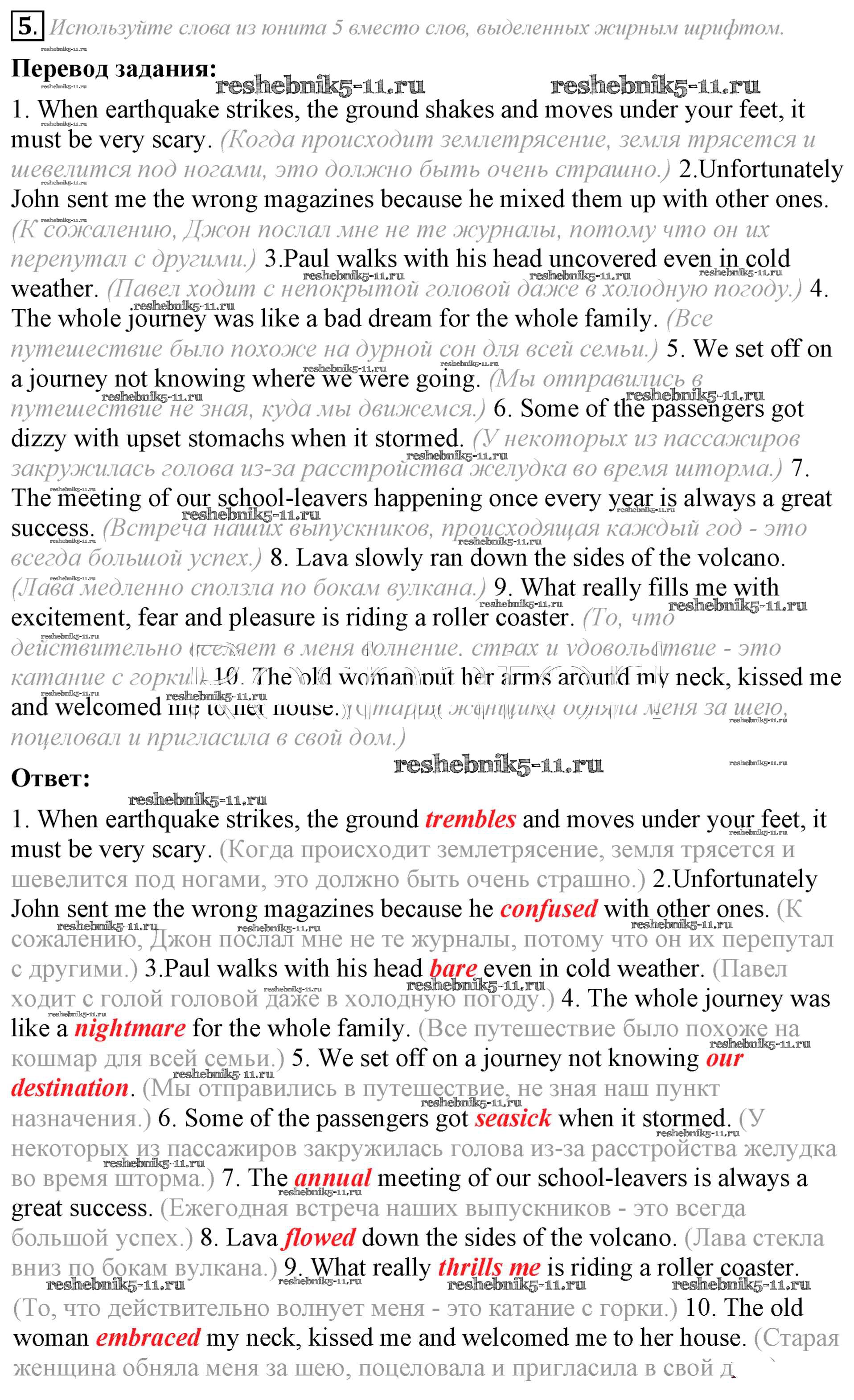 Готовая домашняя работа с ответами по Английскому языку за 8 класс Афанасьева, Михеева Учебник Углубленный уровень Просвещение 2014 ФГОС - Unit 6 5