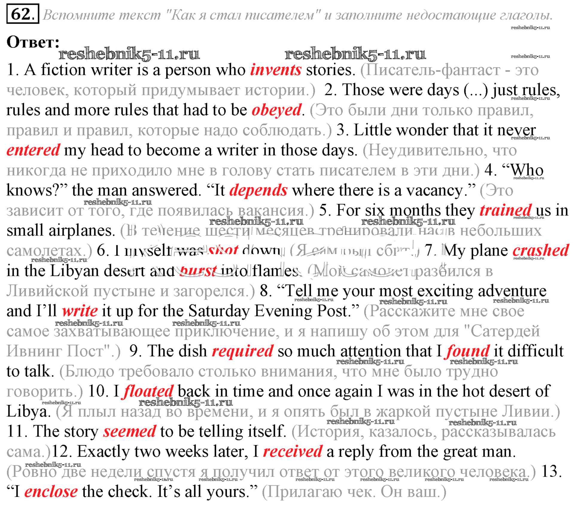 Готовая домашняя работа с ответами по Английскому языку за 8 класс Афанасьева, Михеева Учебник Углубленный уровень Просвещение 2014 ФГОС - Unit 6 62