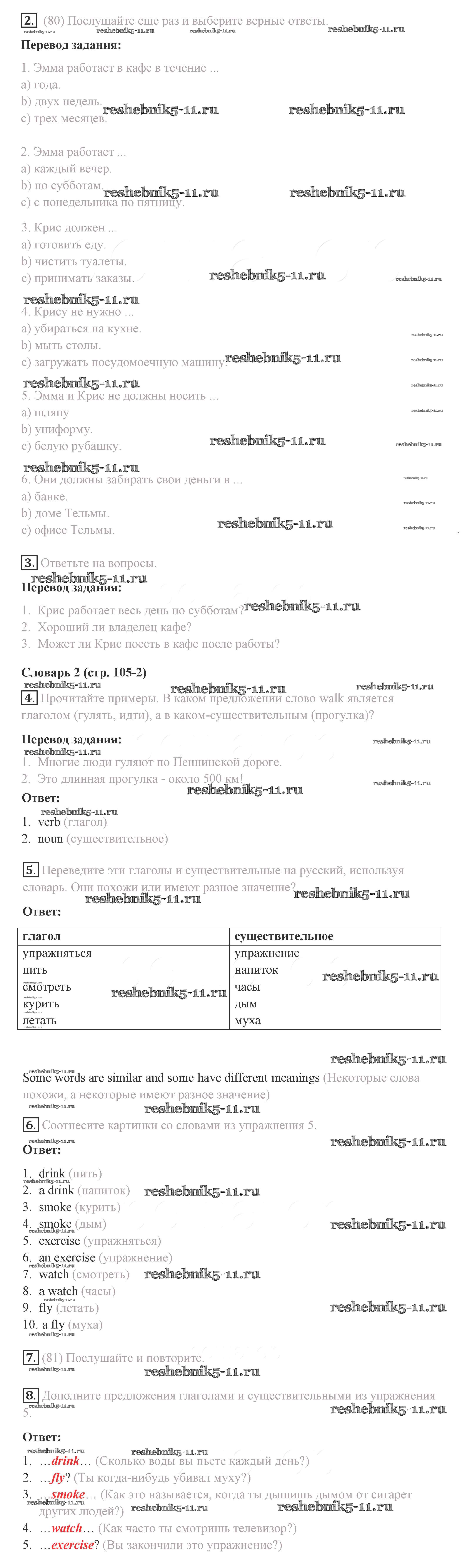 Готовая домашняя работа с ответами по Английскому языку за 8 класс Комарова, Ларионова, Макбет Учебник Инновационная школа Русское слово 2016 ФГОС - Страницы 105