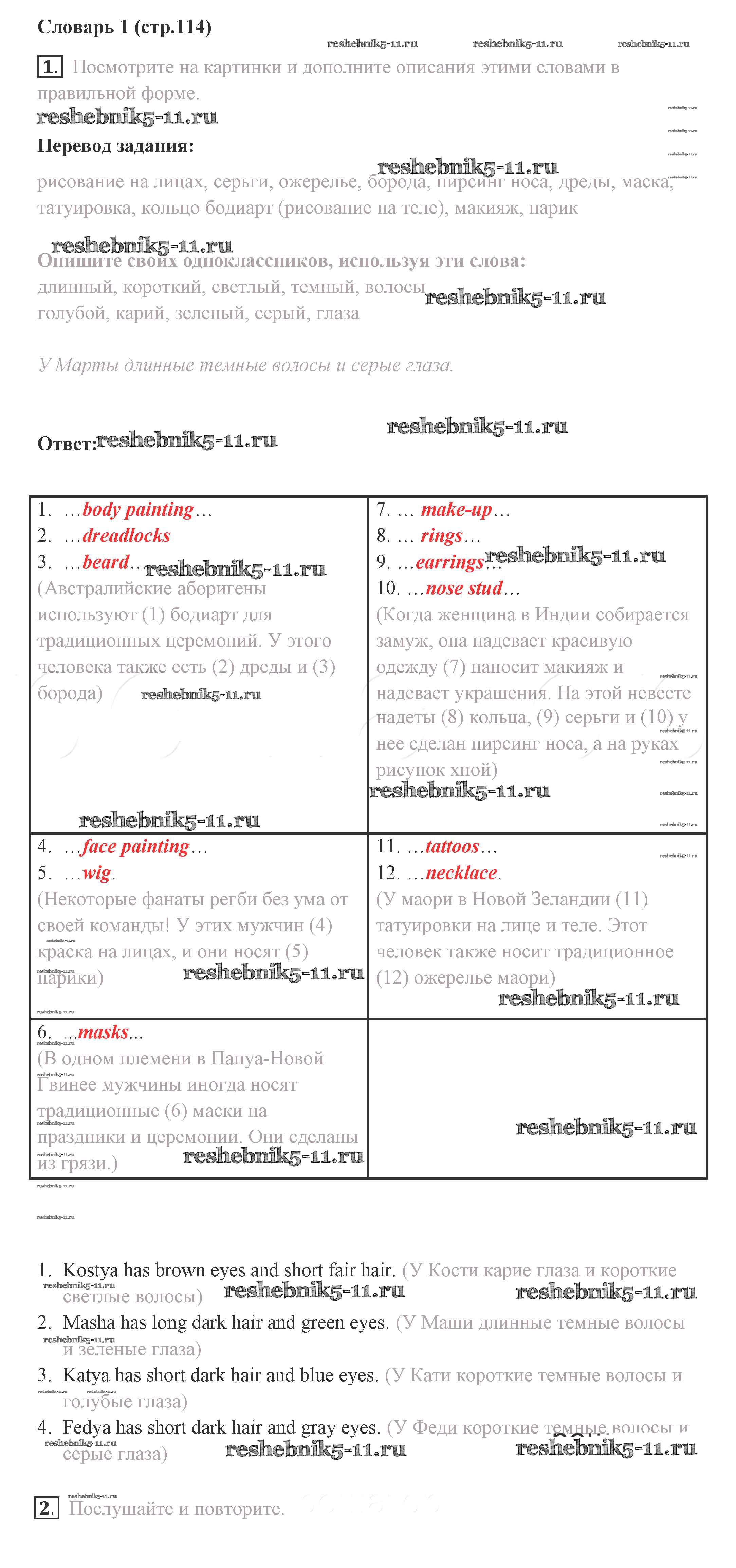 Готовая домашняя работа с ответами по Английскому языку за 8 класс Комарова, Ларионова, Макбет Учебник Инновационная школа Русское слово 2016 ФГОС - Страницы 114
