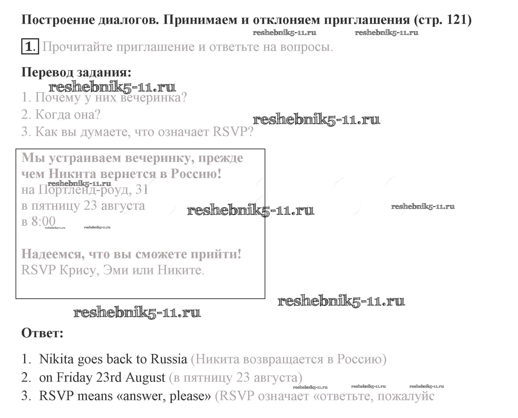 Готовая домашняя работа с ответами по Английскому языку за 8 класс Комарова, Ларионова, Макбет Учебник Инновационная школа Русское слово 2016 ФГОС - Страницы 121