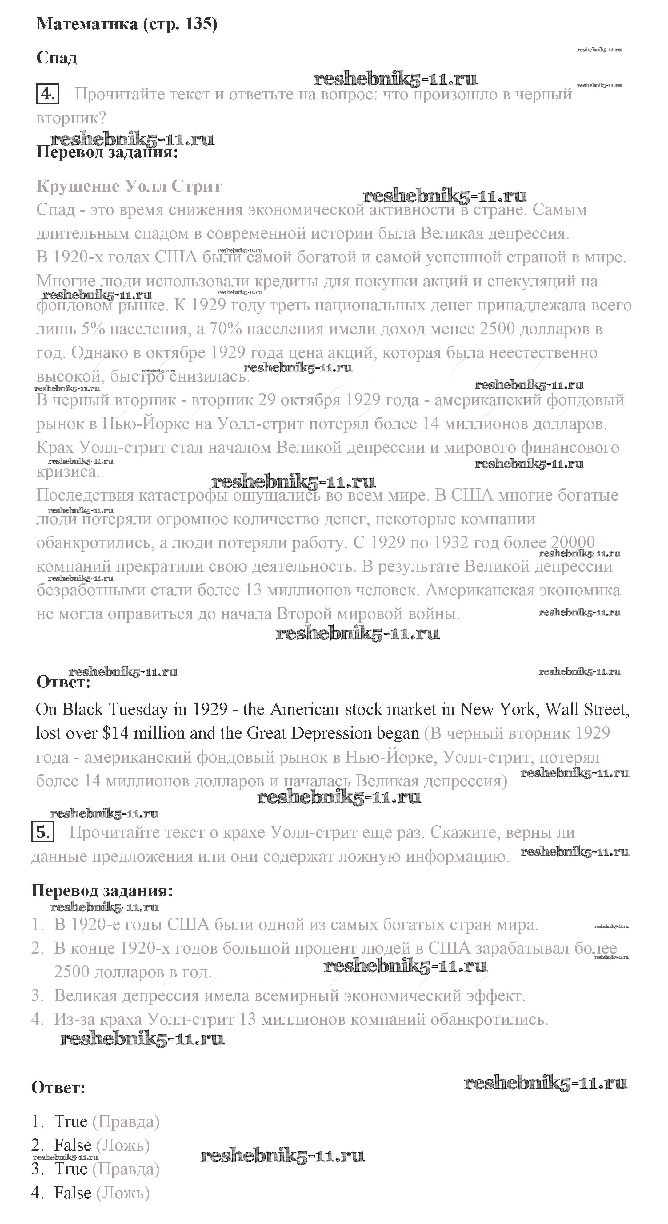 Готовая домашняя работа с ответами по Английскому языку за 8 класс Комарова, Ларионова, Макбет Учебник Инновационная школа Русское слово 2016 ФГОС - Страницы 135
