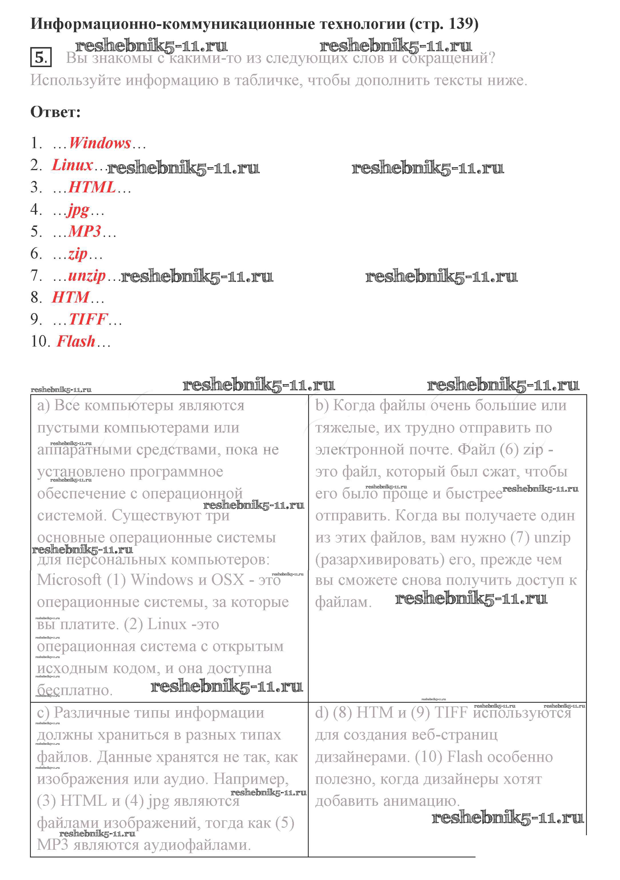 Готовая домашняя работа с ответами по Английскому языку за 8 класс Комарова, Ларионова, Макбет Учебник Инновационная школа Русское слово 2016 ФГОС - Страницы 139