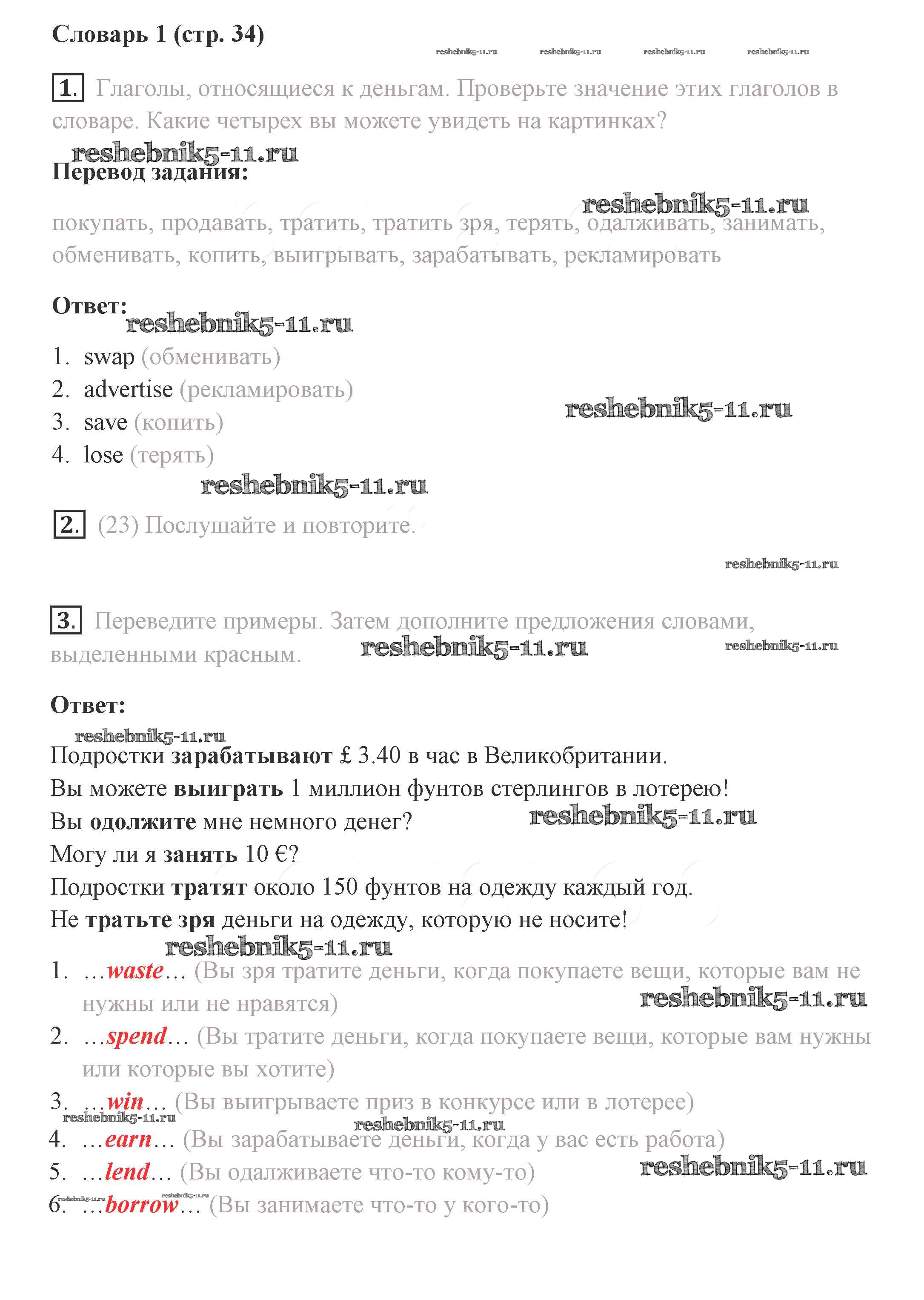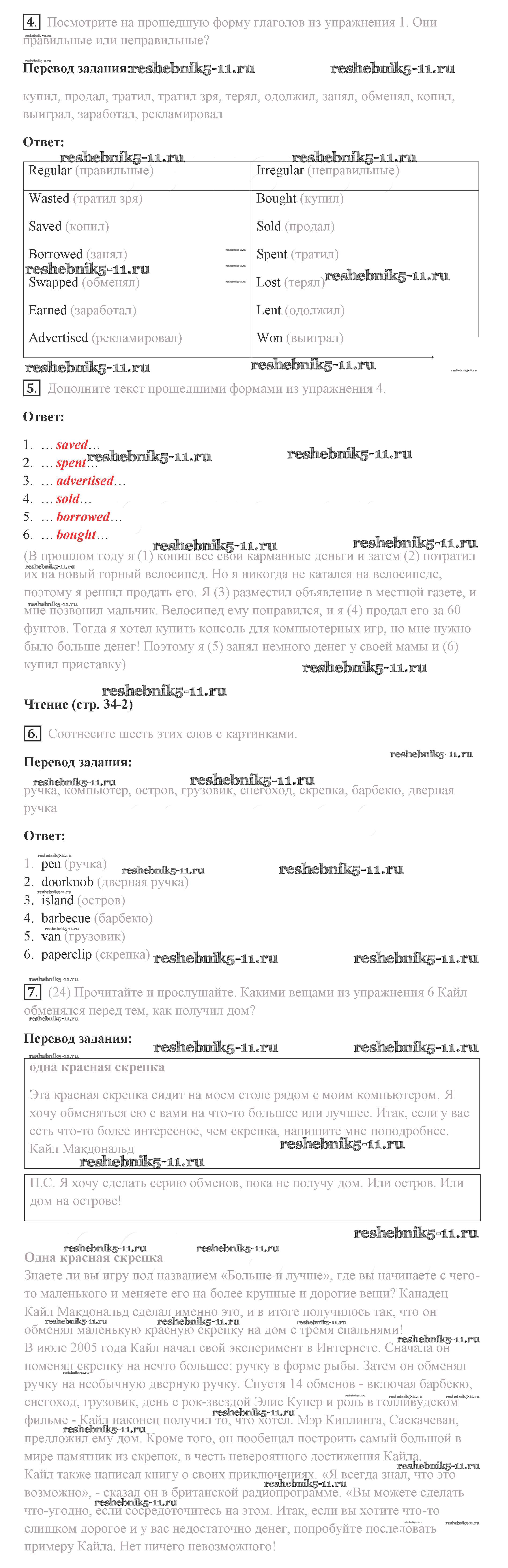 Готовая домашняя работа с ответами по Английскому языку за 8 класс Комарова, Ларионова, Макбет Учебник Инновационная школа Русское слово 2016 ФГОС - Страницы 34