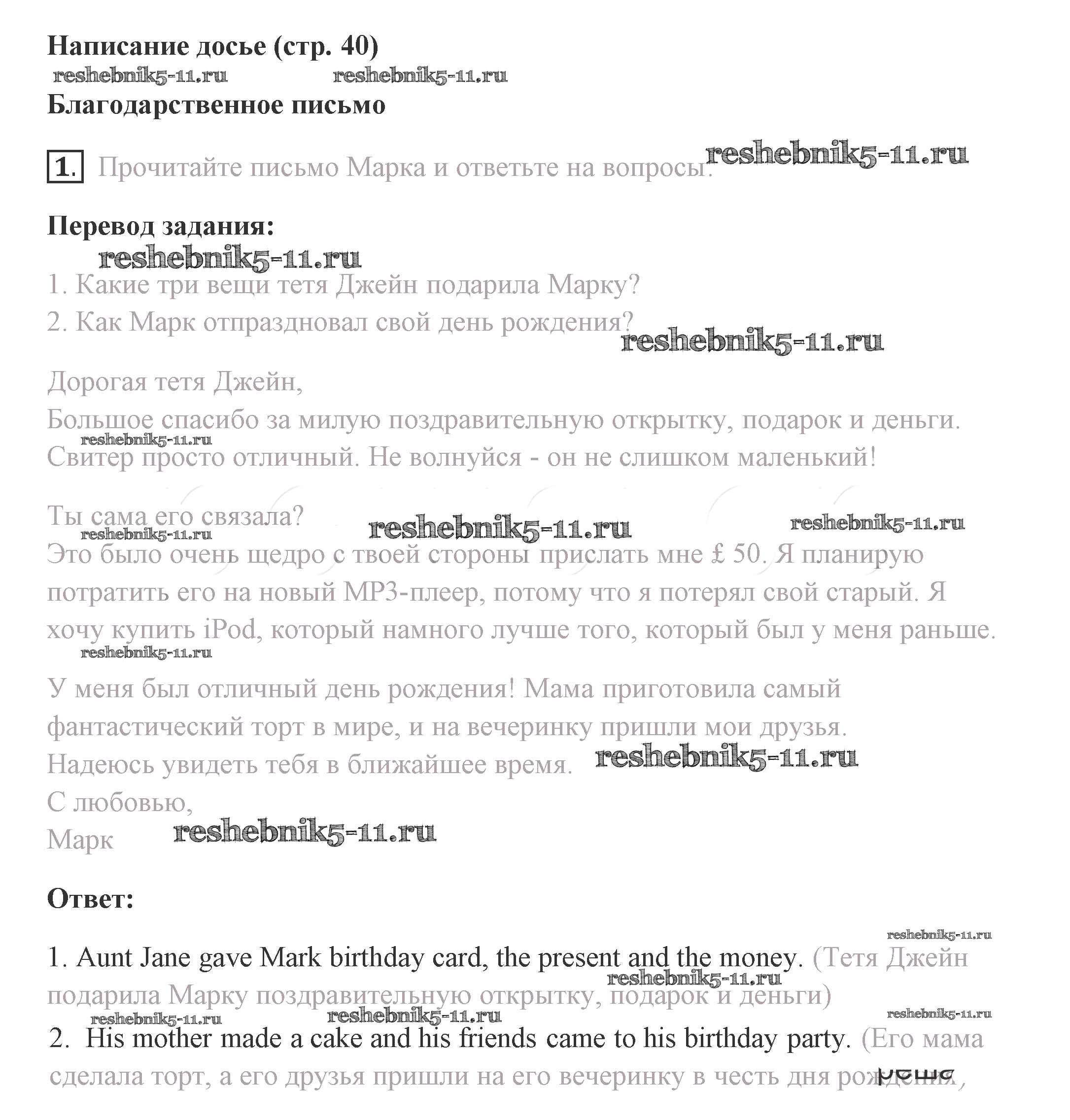Готовая домашняя работа с ответами по Английскому языку за 8 класс Комарова, Ларионова, Макбет Учебник Инновационная школа Русское слово 2016 ФГОС - Страницы 40
