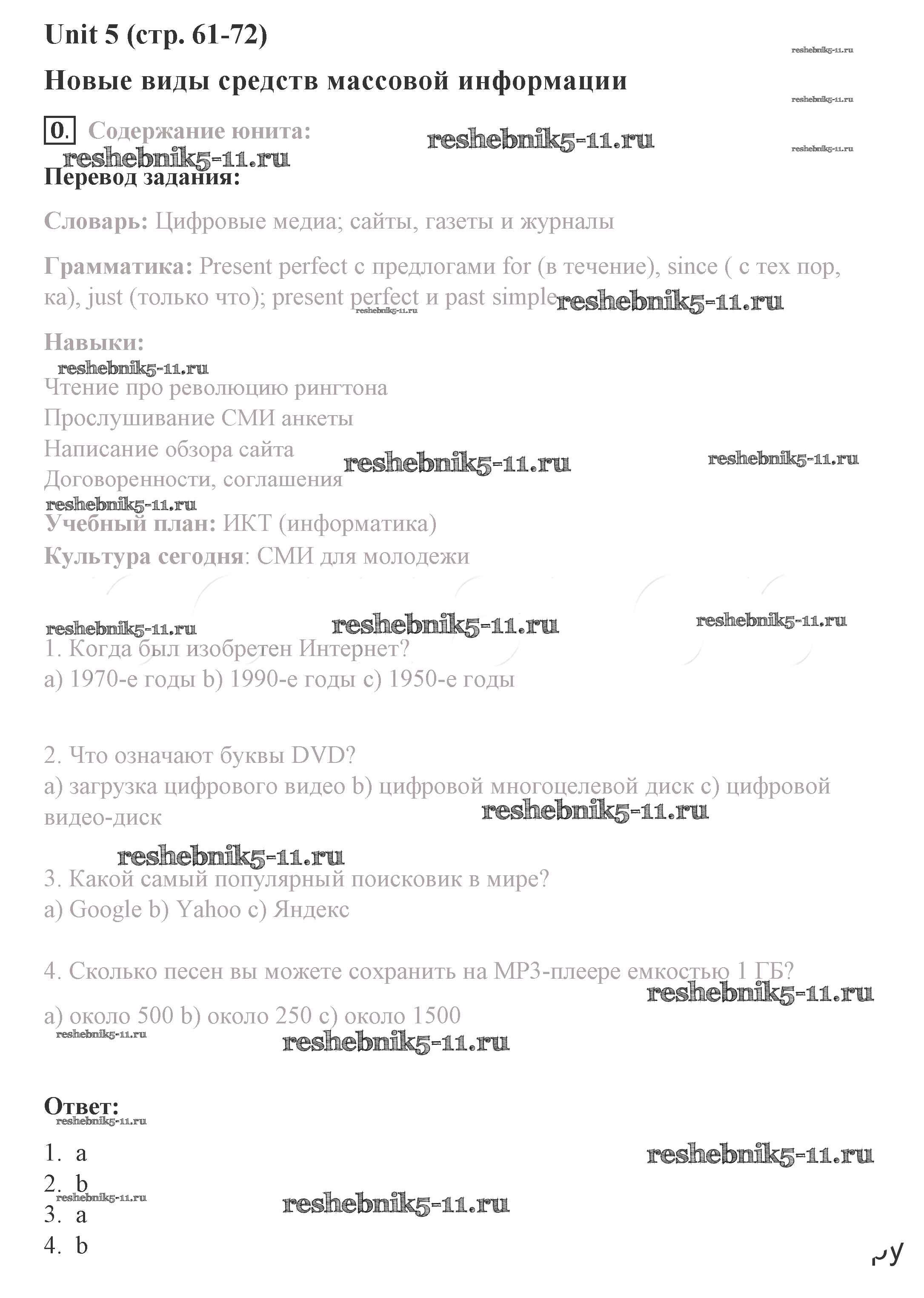 Готовая домашняя работа с ответами по Английскому языку за 8 класс Комарова, Ларионова, Макбет Учебник Инновационная школа Русское слово 2016 ФГОС - Страницы 61