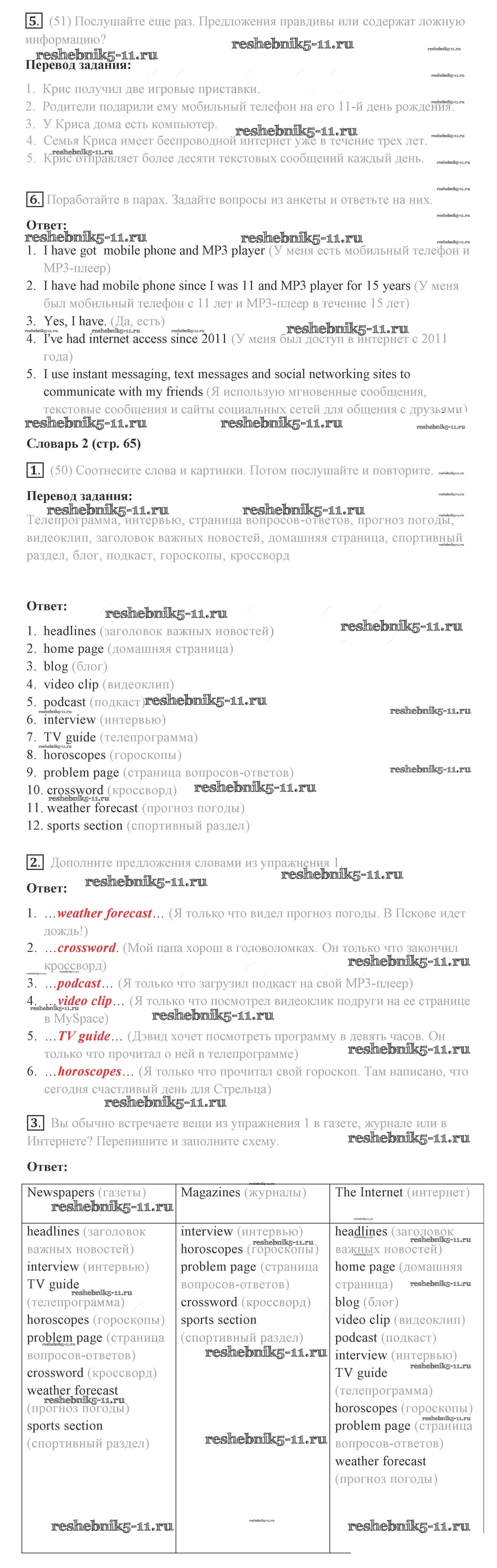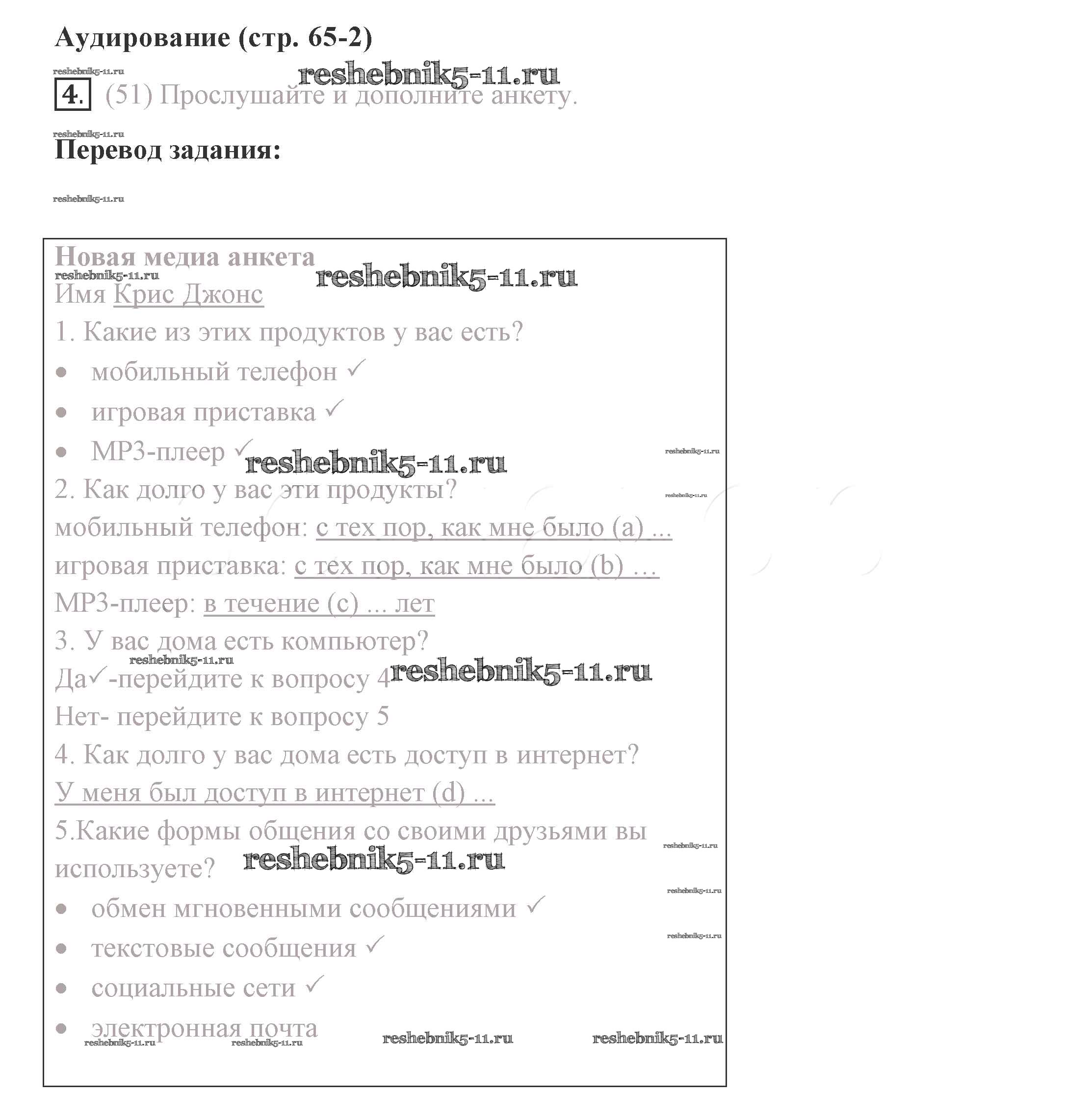 Готовая домашняя работа с ответами по Английскому языку за 8 класс Комарова, Ларионова, Макбет Учебник Инновационная школа Русское слово 2016 ФГОС - Страницы 65