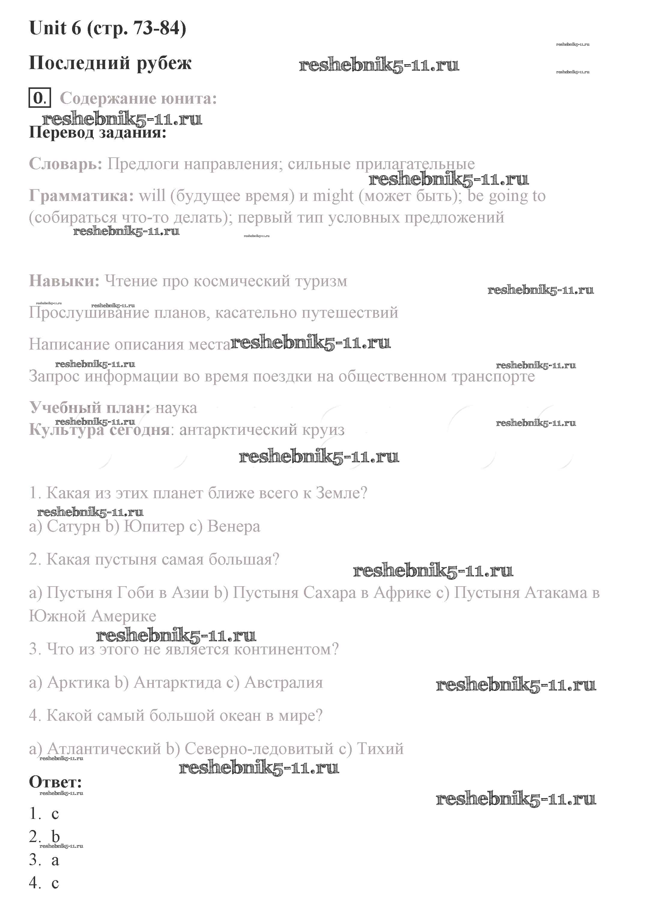 Готовая домашняя работа с ответами по Английскому языку за 8 класс Комарова, Ларионова, Макбет Учебник Инновационная школа Русское слово 2016 ФГОС - Страницы 73