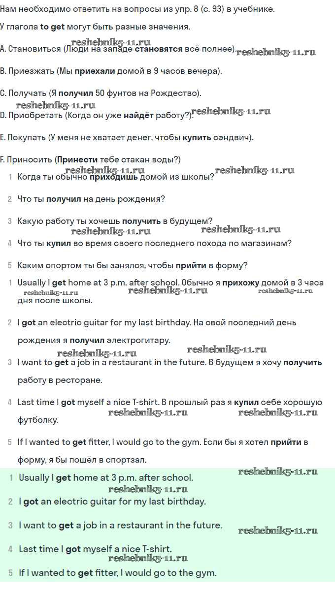 Готовая домашняя работа с ответами по Английскому языку за 8 класс Комарова, Ларионова, Макбет Учебник Инновационная школа Русское слово 2016 ФГОС - Страницы 93