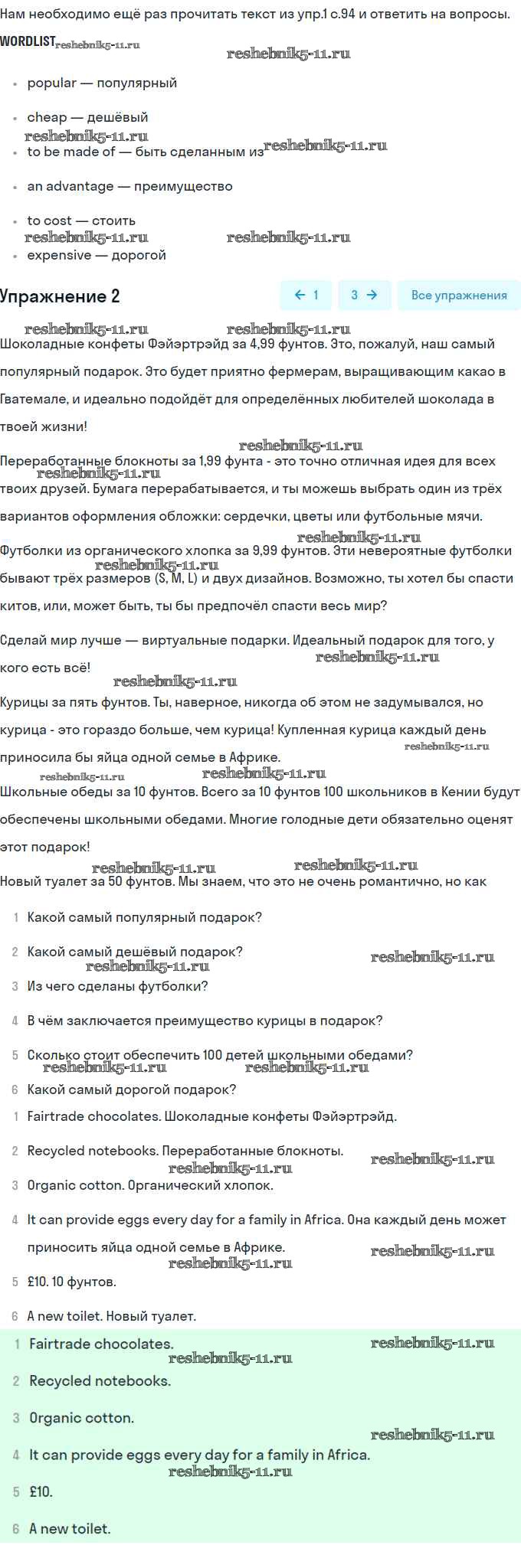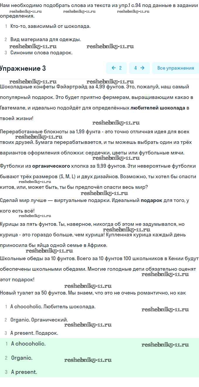 Готовая домашняя работа с ответами по Английскому языку за 8 класс Комарова, Ларионова, Макбет Учебник Инновационная школа Русское слово 2016 ФГОС - Страницы 94