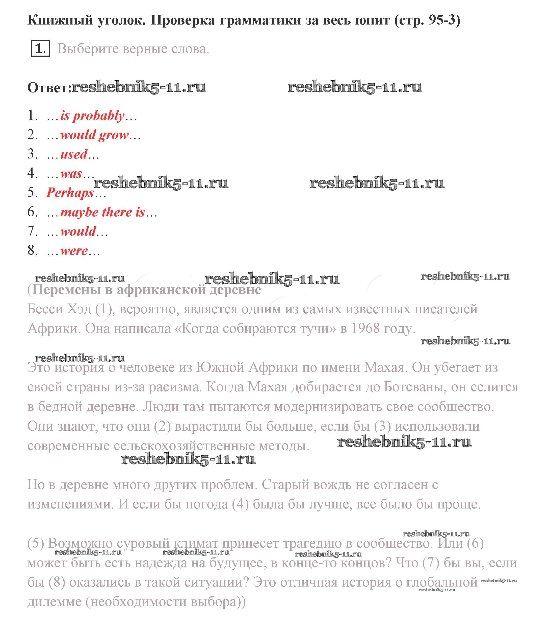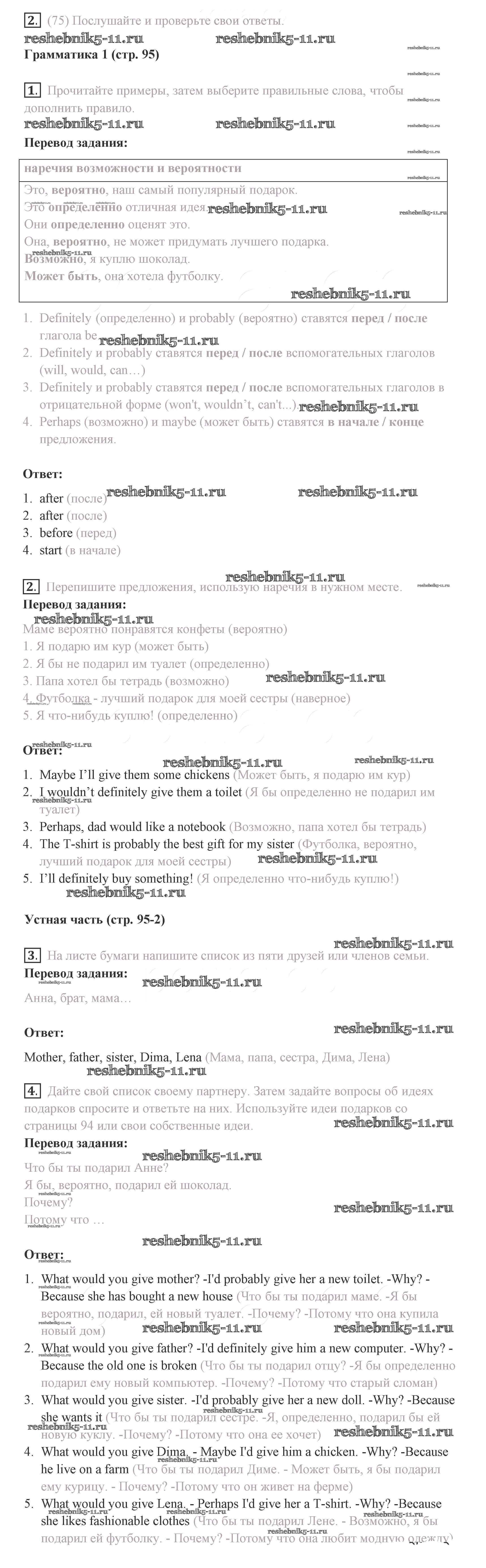 Готовая домашняя работа с ответами по Английскому языку за 8 класс Комарова, Ларионова, Макбет Учебник Инновационная школа Русское слово 2016 ФГОС - Страницы 95