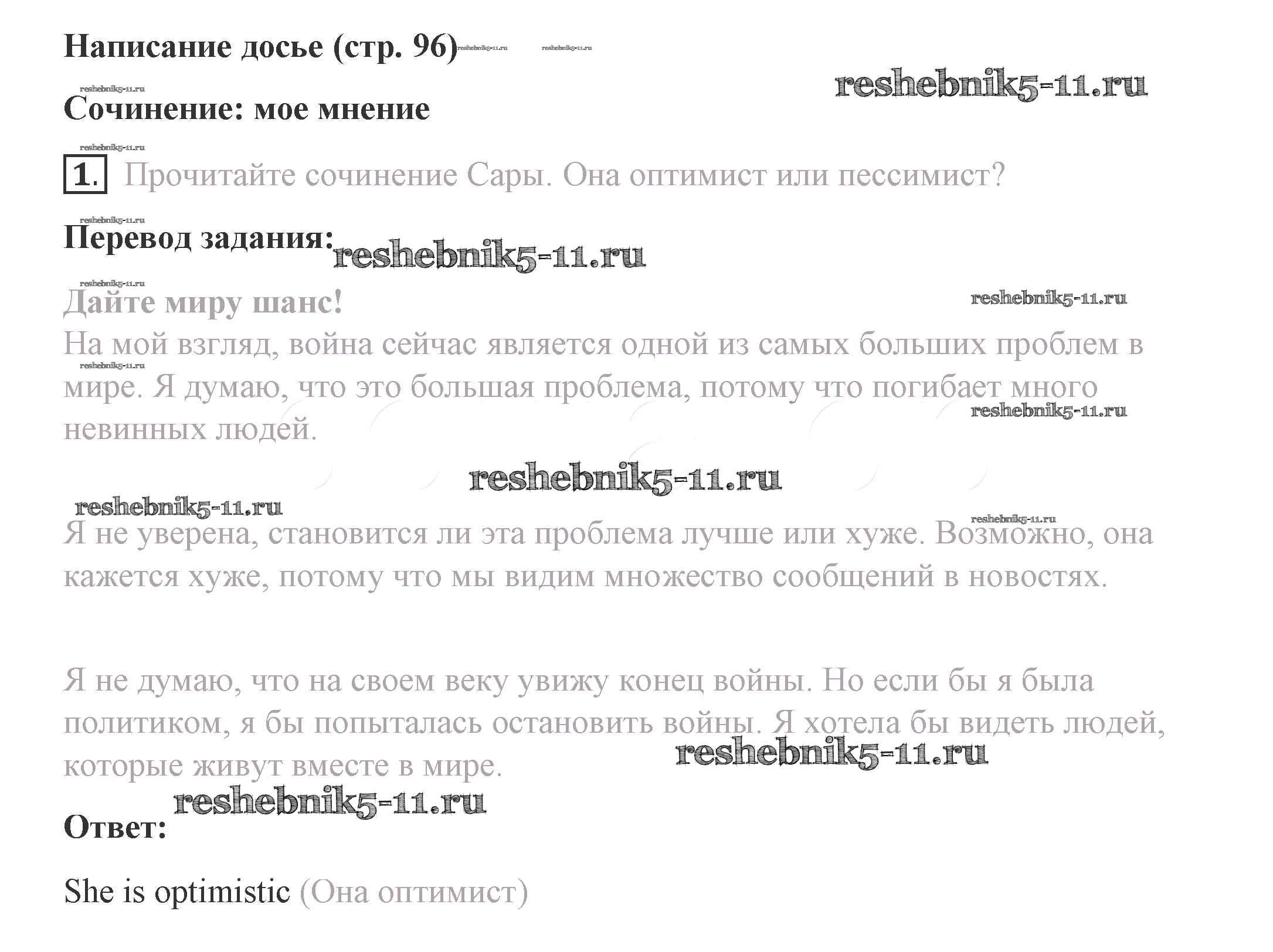 Готовая домашняя работа с ответами по Английскому языку за 8 класс Комарова, Ларионова, Макбет Учебник Инновационная школа Русское слово 2016 ФГОС - Страницы 96