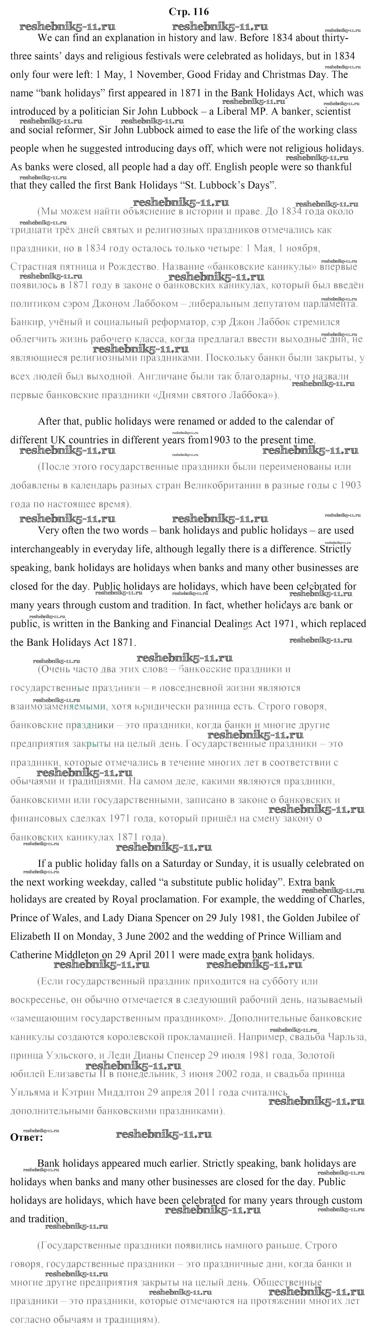 Готовая домашняя работа с ответами по Английскому языку за 8 класс Лапицкая, Демченко, Волков, Калишевич, Севрюкова, Юхнель Учебник Высшая школа 2016 ФГОС - Страницы 116