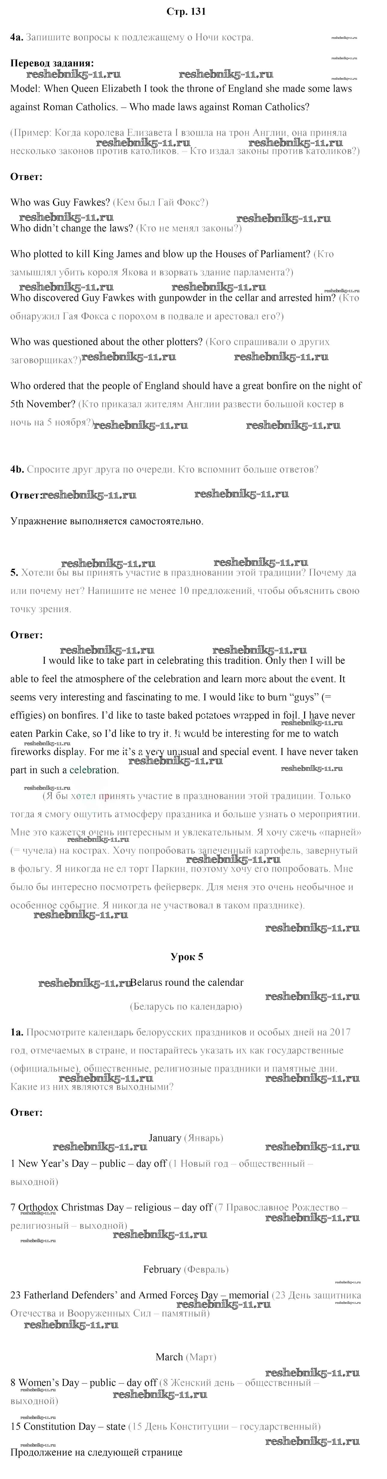 Готовая домашняя работа с ответами по Английскому языку за 8 класс Лапицкая, Демченко, Волков, Калишевич, Севрюкова, Юхнель Учебник Высшая школа 2016 ФГОС - Страницы 131
