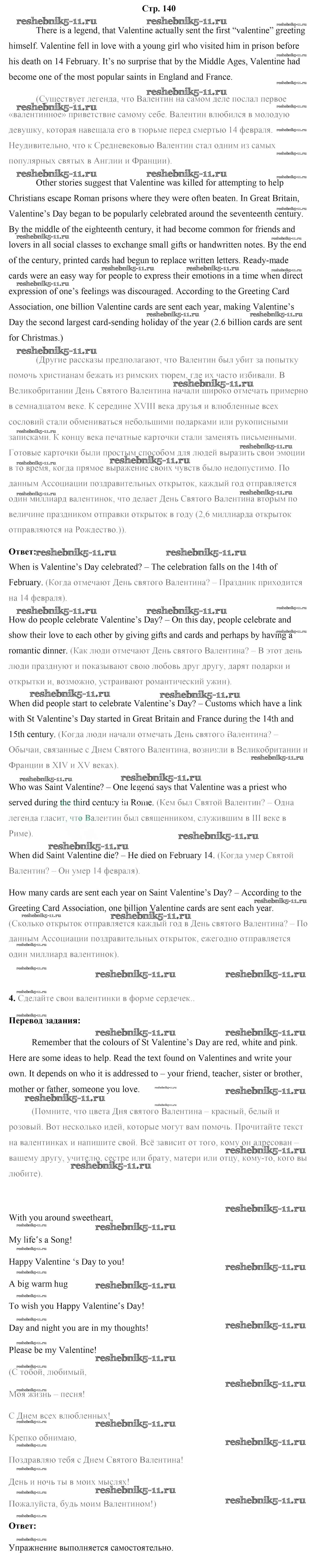 Готовая домашняя работа с ответами по Английскому языку за 8 класс Лапицкая, Демченко, Волков, Калишевич, Севрюкова, Юхнель Учебник Высшая школа 2016 ФГОС - Страницы 140