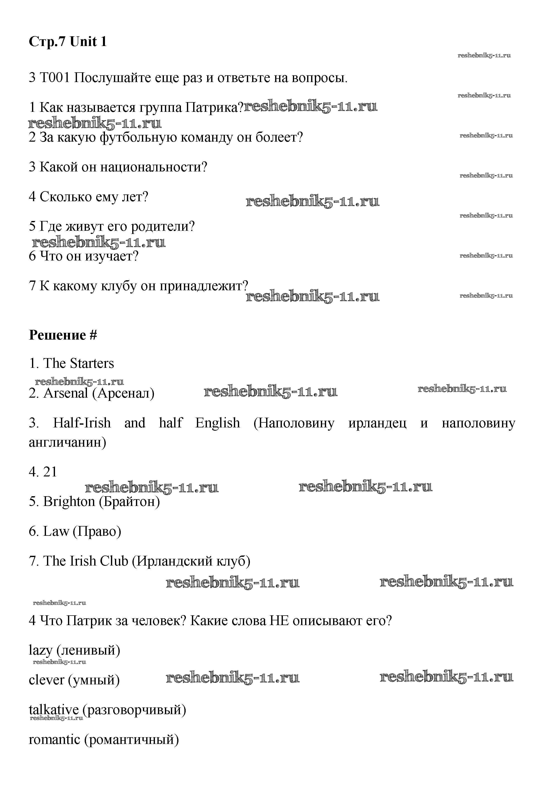 Английский язык за 8 класс Вербицкая Учебник Forward Вентана-граф unit 1 стр.7