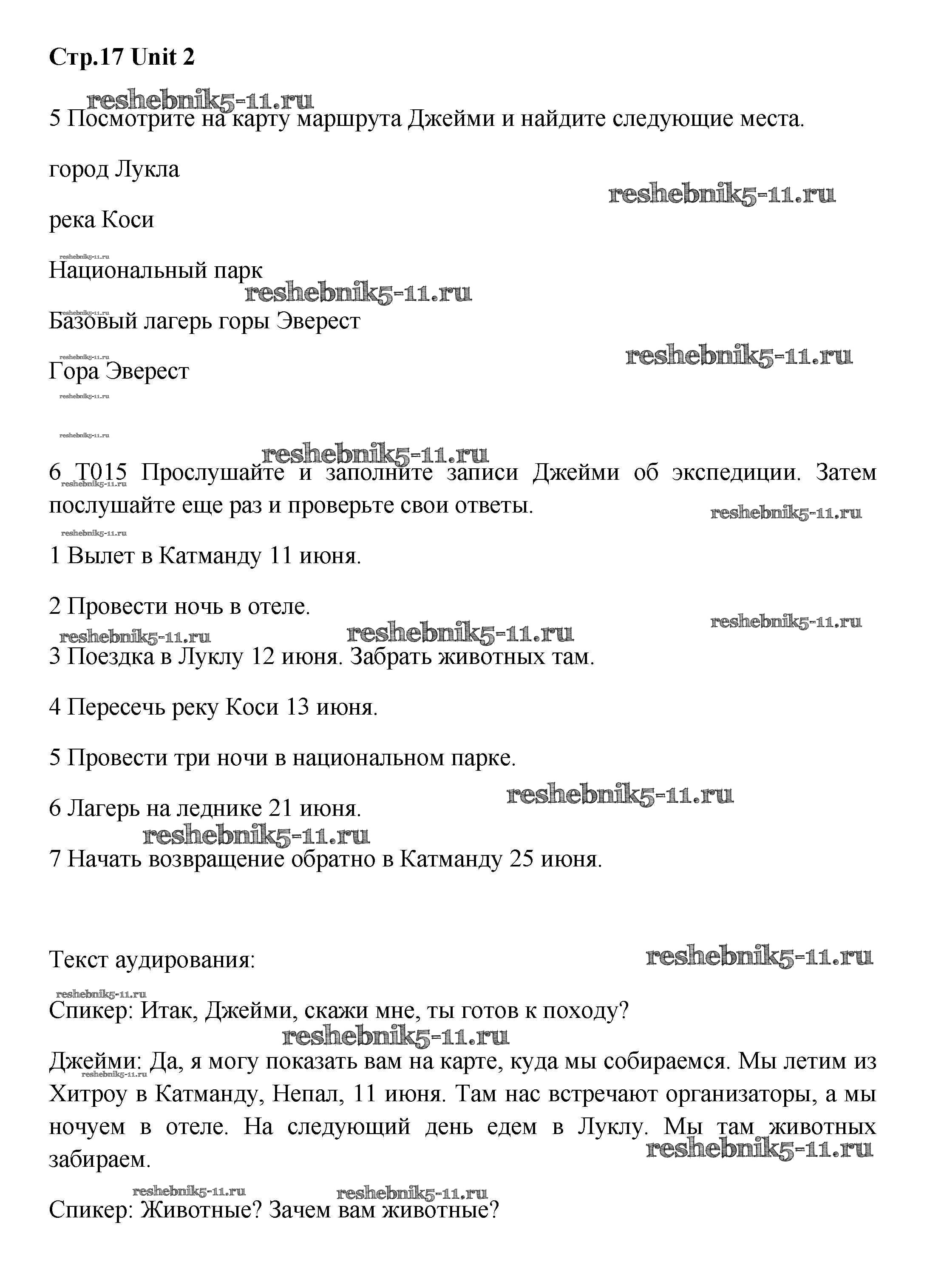 Готовая домашняя работа с ответами по Английскому языку за 8 класс Вербицкая, Маккинли, Хастингс, Миндрул Учебник Forward Вентана-граф 2016 ФГОС - Unit 2 Globetrotter! стр.17