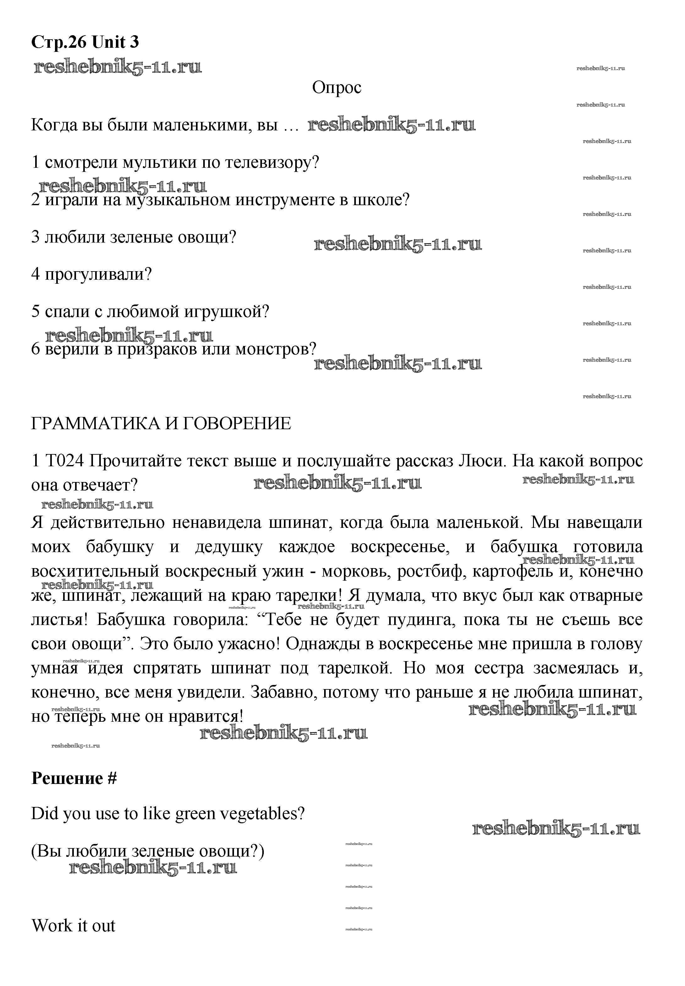 Готовая домашняя работа с ответами по Английскому языку за 8 класс Вербицкая, Маккинли, Хастингс, Миндрул Учебник Forward Вентана-граф 2016 ФГОС - Unit 3 Growing up стр.26